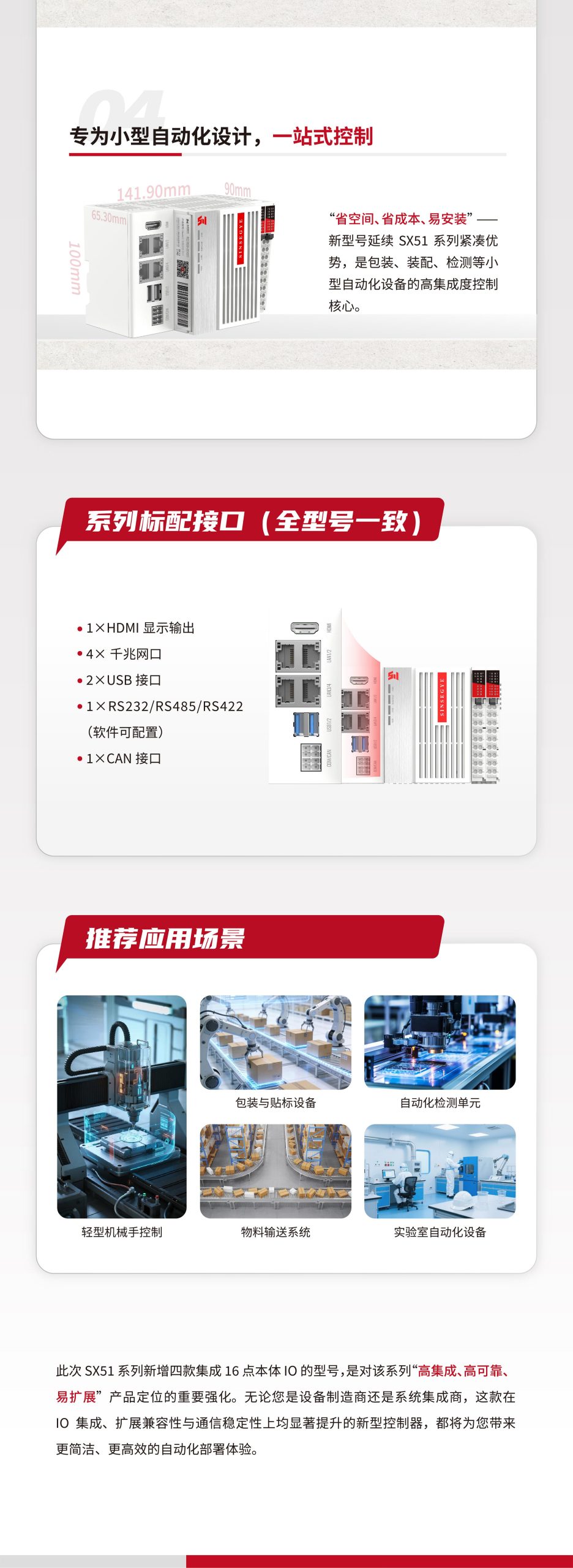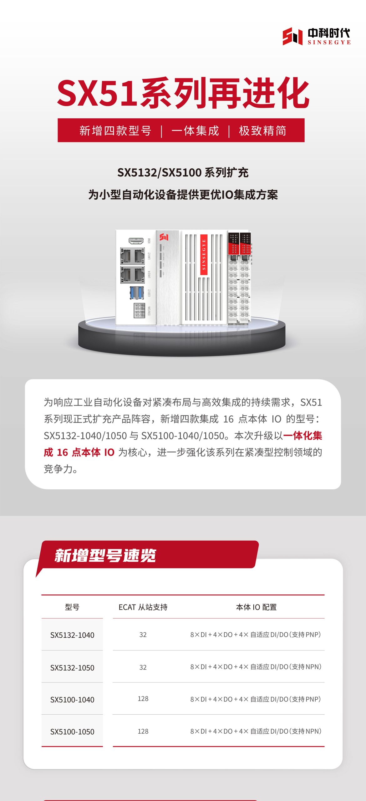 SX51系列扩充|新增四款型号,支持16点本体IO,一体集成,极致精简!