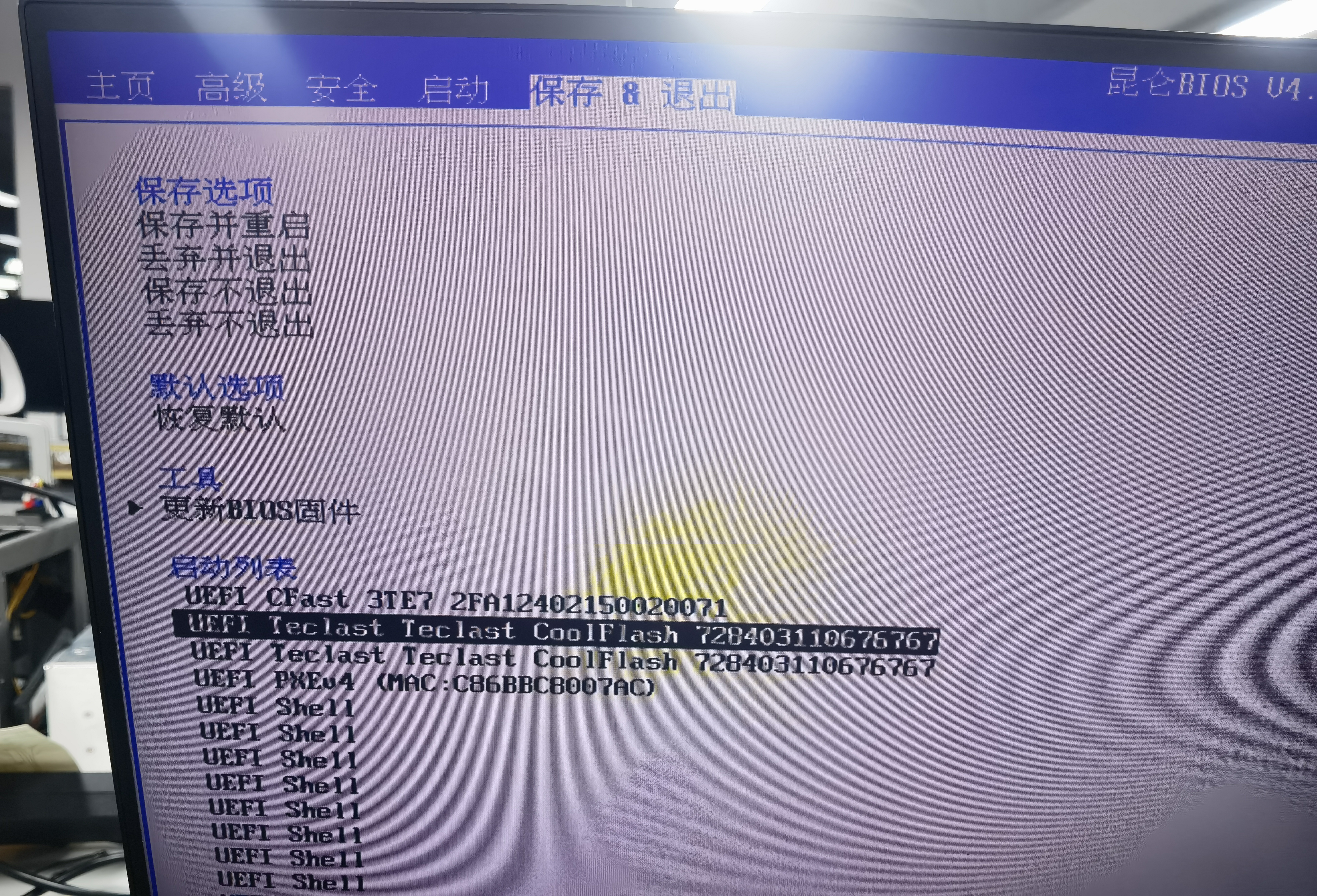 在开机启动页面快速点按delete或F2直至进入bios界面,进入"save & exit"页面。启动列表项,选择所使用的U盘,点击"enter",进入系统。