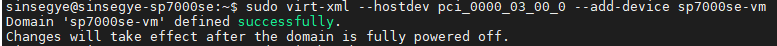 sudo virt-xml --hostdev pci_0000_03_00_0 --add-device sp7000Se-vm 2>/dev/null