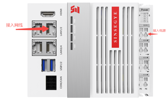 ①首先您需要给工智机接入电源和网线,如图所示(以SX51系列工智机为例);