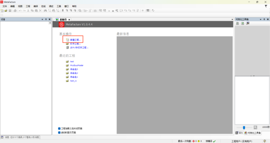 ②确保工智机成功上电并且接入网线后,打开MetaFacture1.0.4.4,点击“新建工程”;