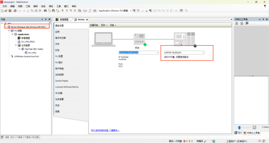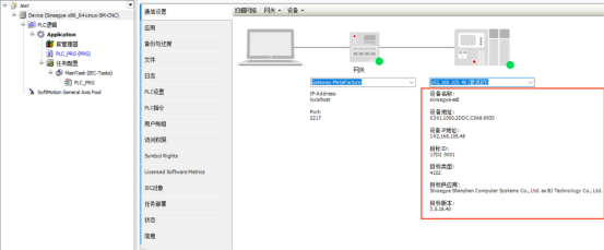 ④进入工程后,点击设备树的“Device”,在设备栏输入工智机的IP地址,即可扫描到工智机并查看工智机信息。