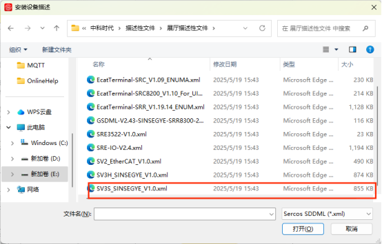从中科时代技术支持获取设备描述文件(如 SV33_SINSEGYE_V1.0.xml)。