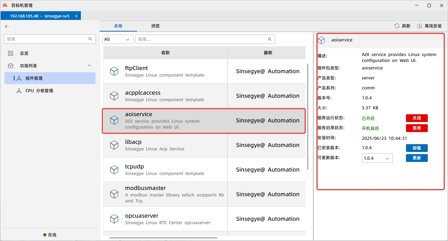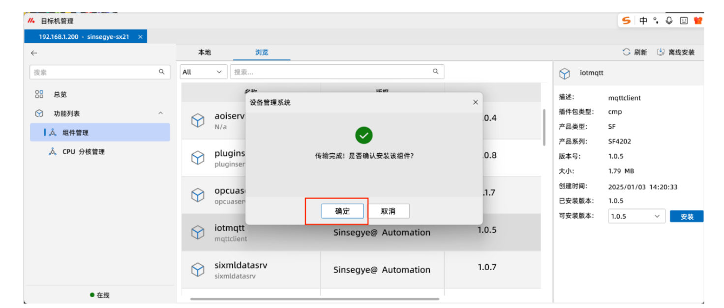 13.安装完成后,点击“本地“,查看组件是否已成功安装至本地工智机。