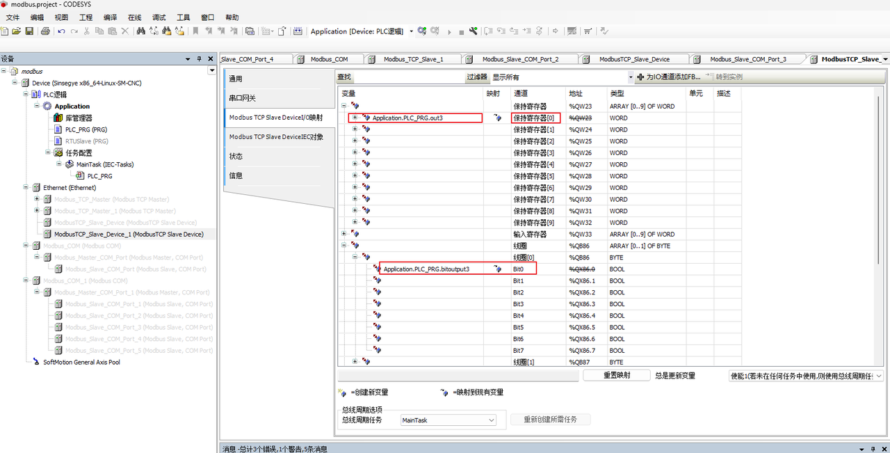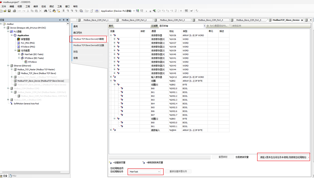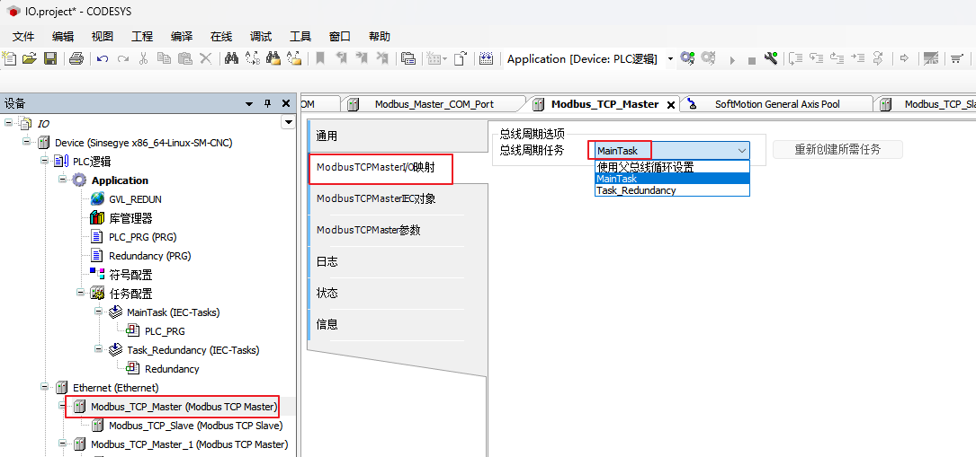 ModbusTCPMasterIO映射-->切换 总线周期任务 使用 MainTask