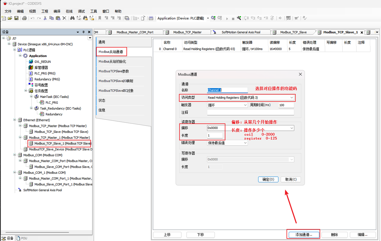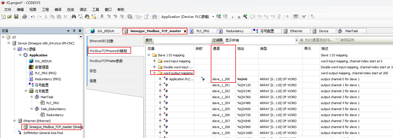 注:channel通道和IO映射配置方法与Modbus TCP的配置一致