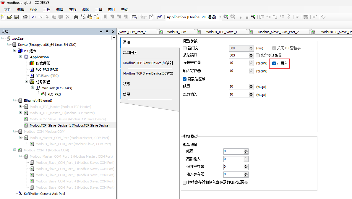 检查ModbusTCPSlave参数下的值,与通用下配置一致