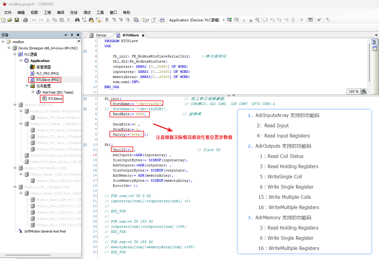 01(线圈寄存器)/03(保持寄存器),在codesys侧可修改