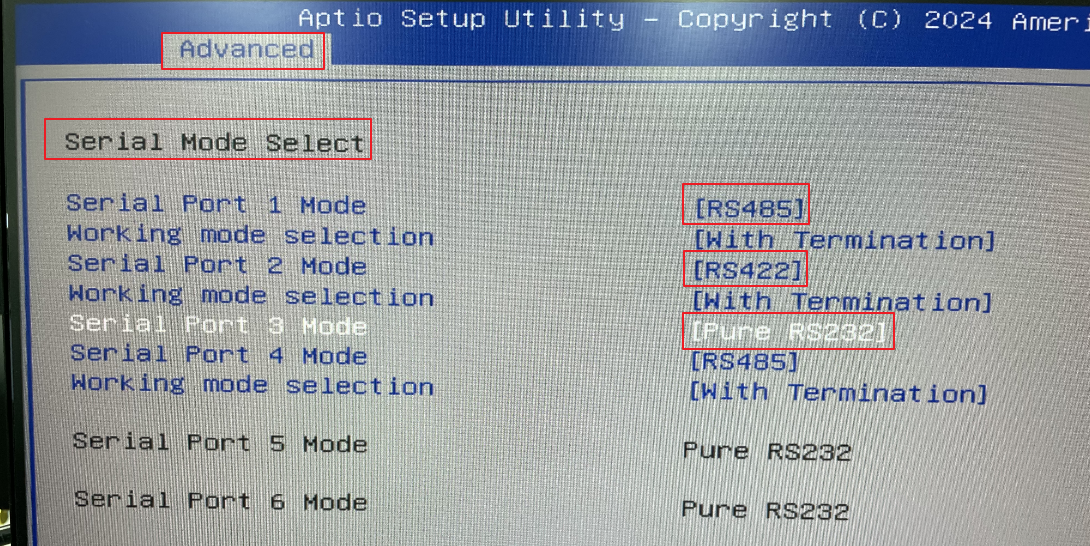 Advanced -> Serial Mode Select -> Serial Port 1 Mode