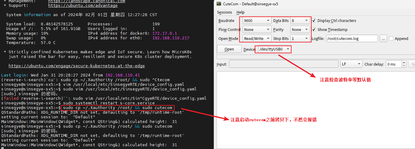 工智机安装cutecom工具:sudo apt install cutecom