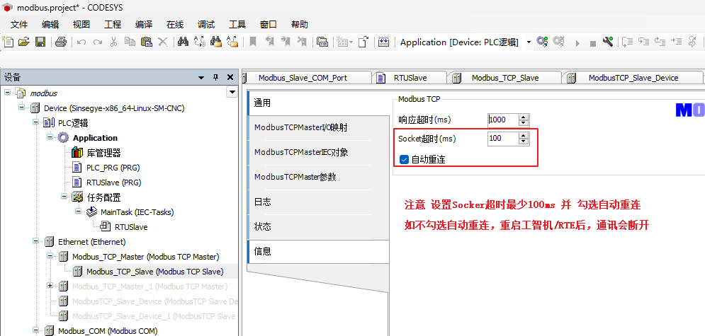 codesys中注意设置Socker超时时间和自动重连