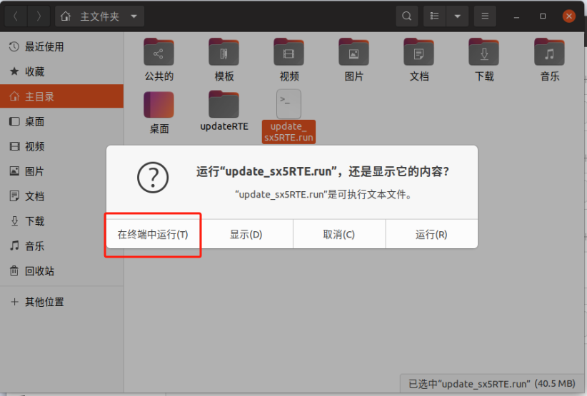 将附件中的可执行文件拷贝到主目录下 update_sx5RTE