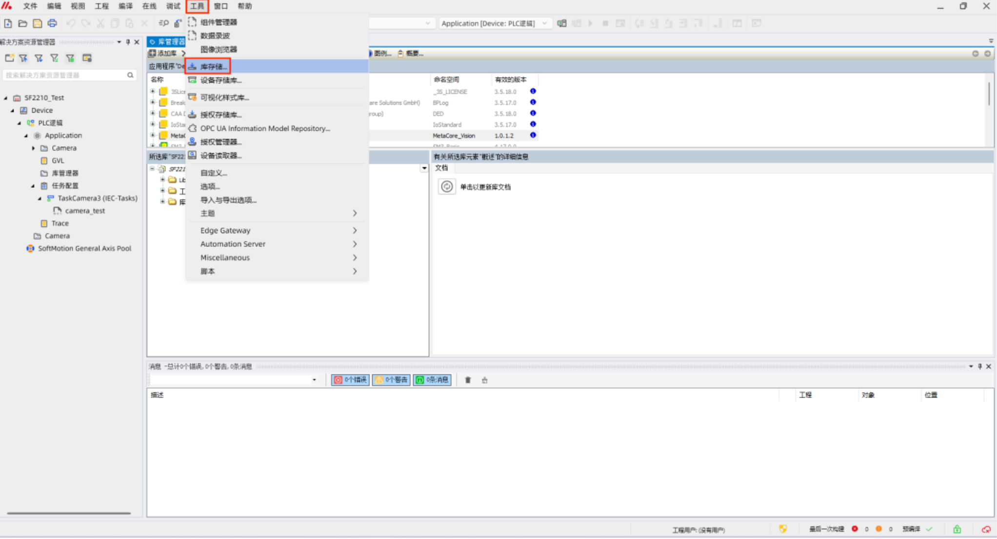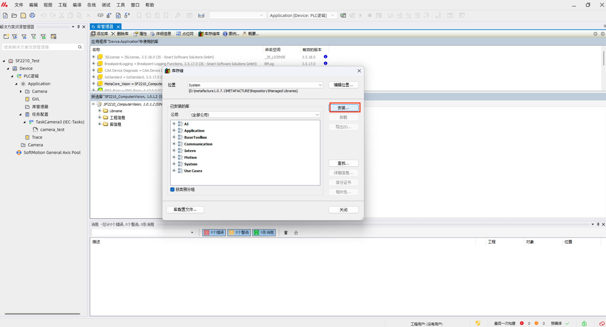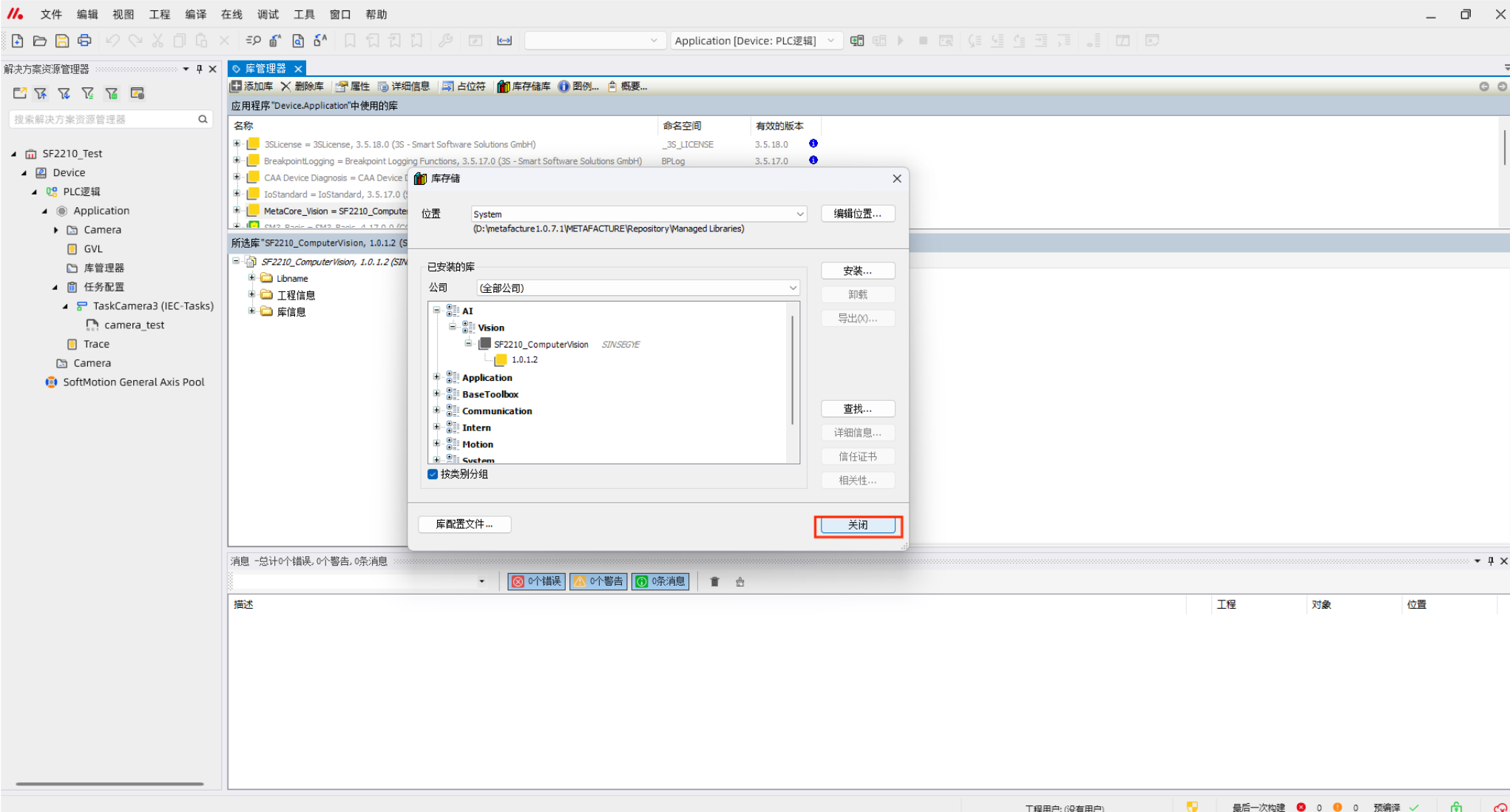 打开metafacture工程文件,点击“工具”——“库存储”——“安装”——选择需要安装的library库文件——“关闭”——“库管理器”——“添加库”——选择刚刚安装的库文件——“确定”