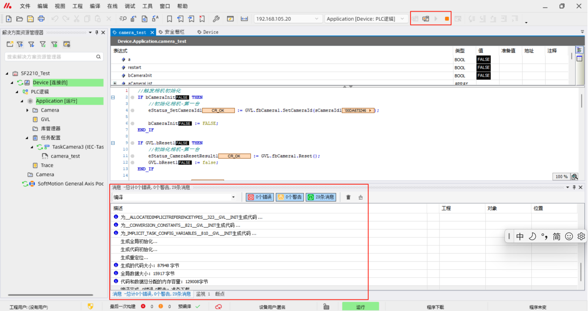 请您确保工智机已正常连接,并再次登录运行,可以看到问题已经解决,工程正常运行,无报错。