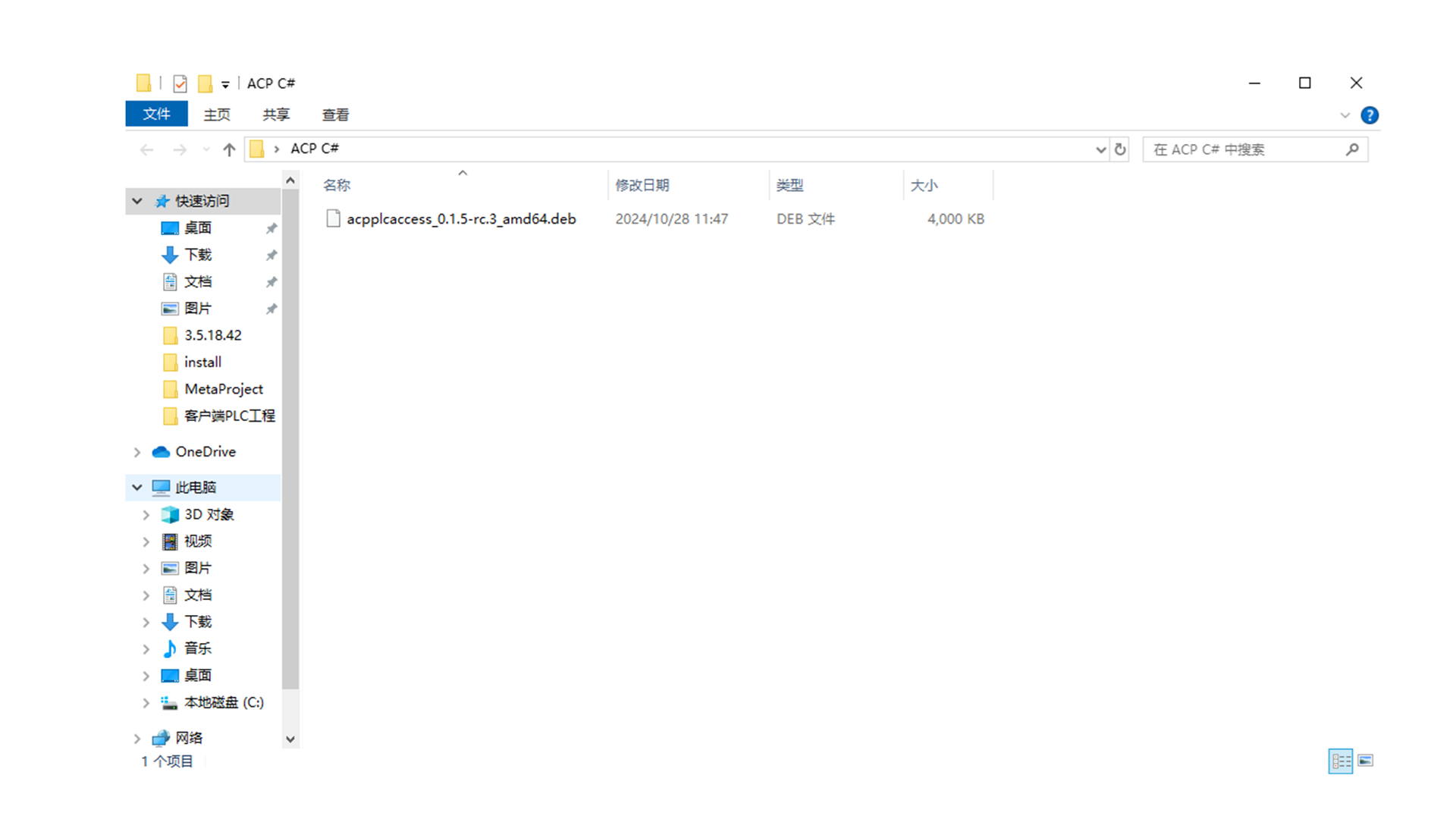 2.将工智机组件acpplcaccess_0.1.5-rc.3_amd64.deb下载至个人电脑中,放置在文件夹下。
