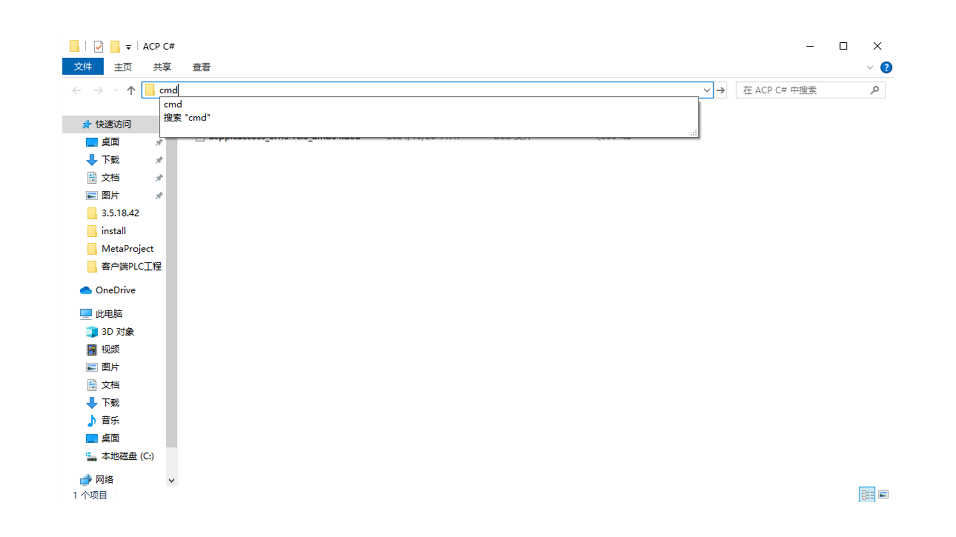 3.在文件夹位置处输入“cmd”,回车。