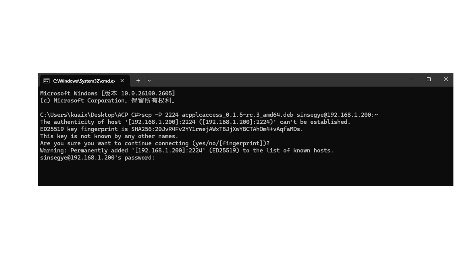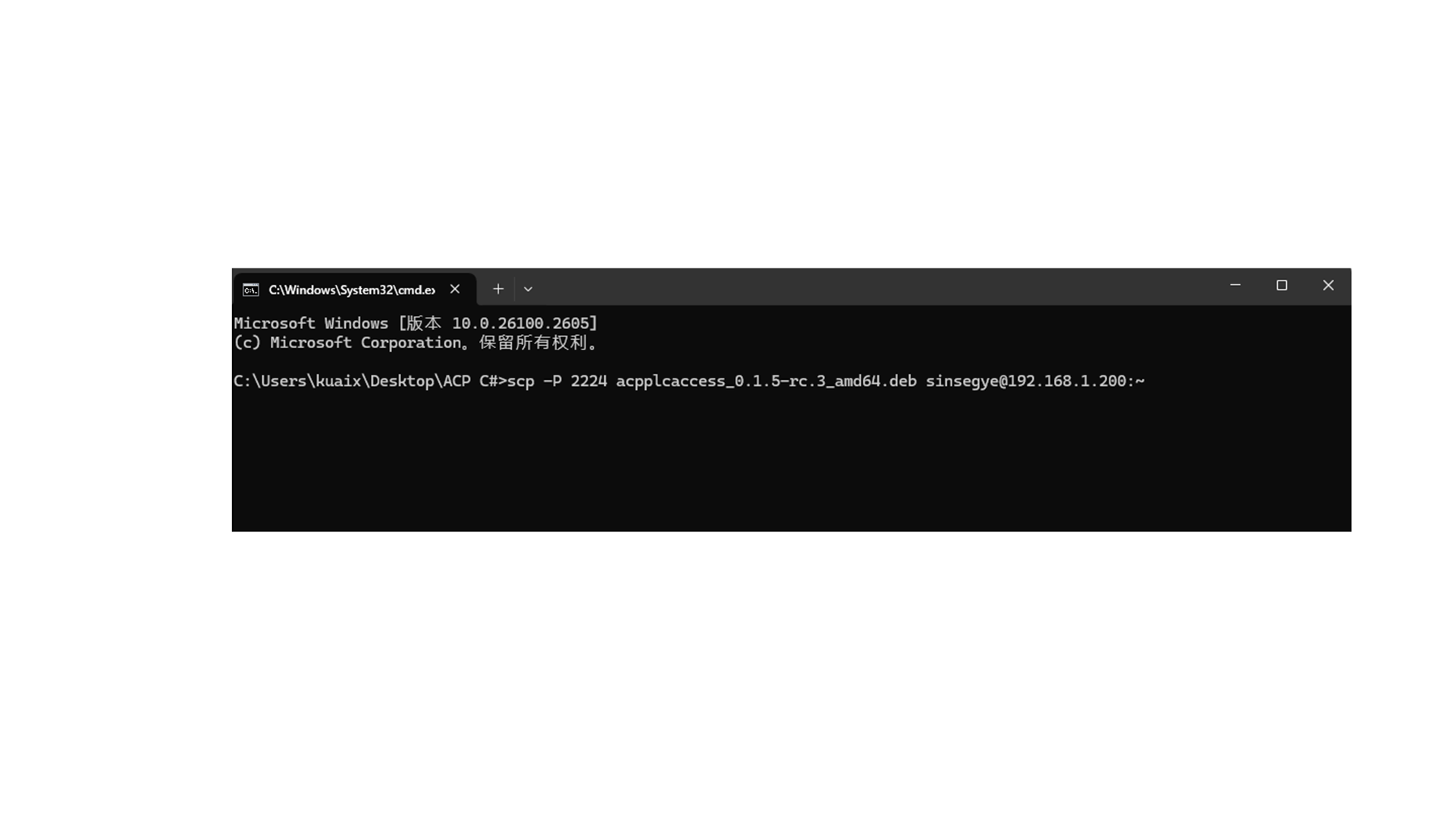scp -P 2224 acpplcaccess\_0.1.5-rc.3\_amd64.deb sinsegye@192.168.1.200:\~