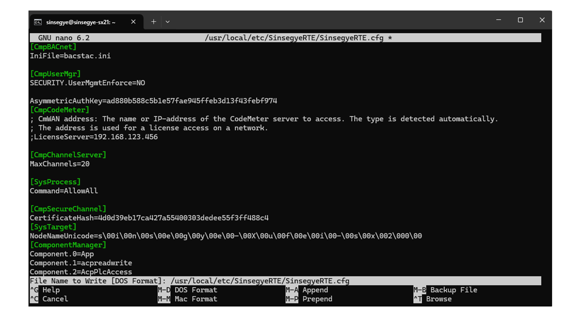 sudo nano /usr/local/etc/SinsegyeRTE/SinsegyeRTE.cfg