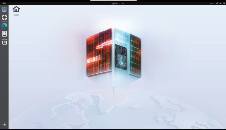 出厂时,工智机已预装操作系统及用户常见的操作软件,方便用户快速使用。请按以下步骤进行第一次开机:1)工智机安装完成,连接显示设备后,接通电源。2)首次自动登陆,进入操作系统桌面,如下图所示