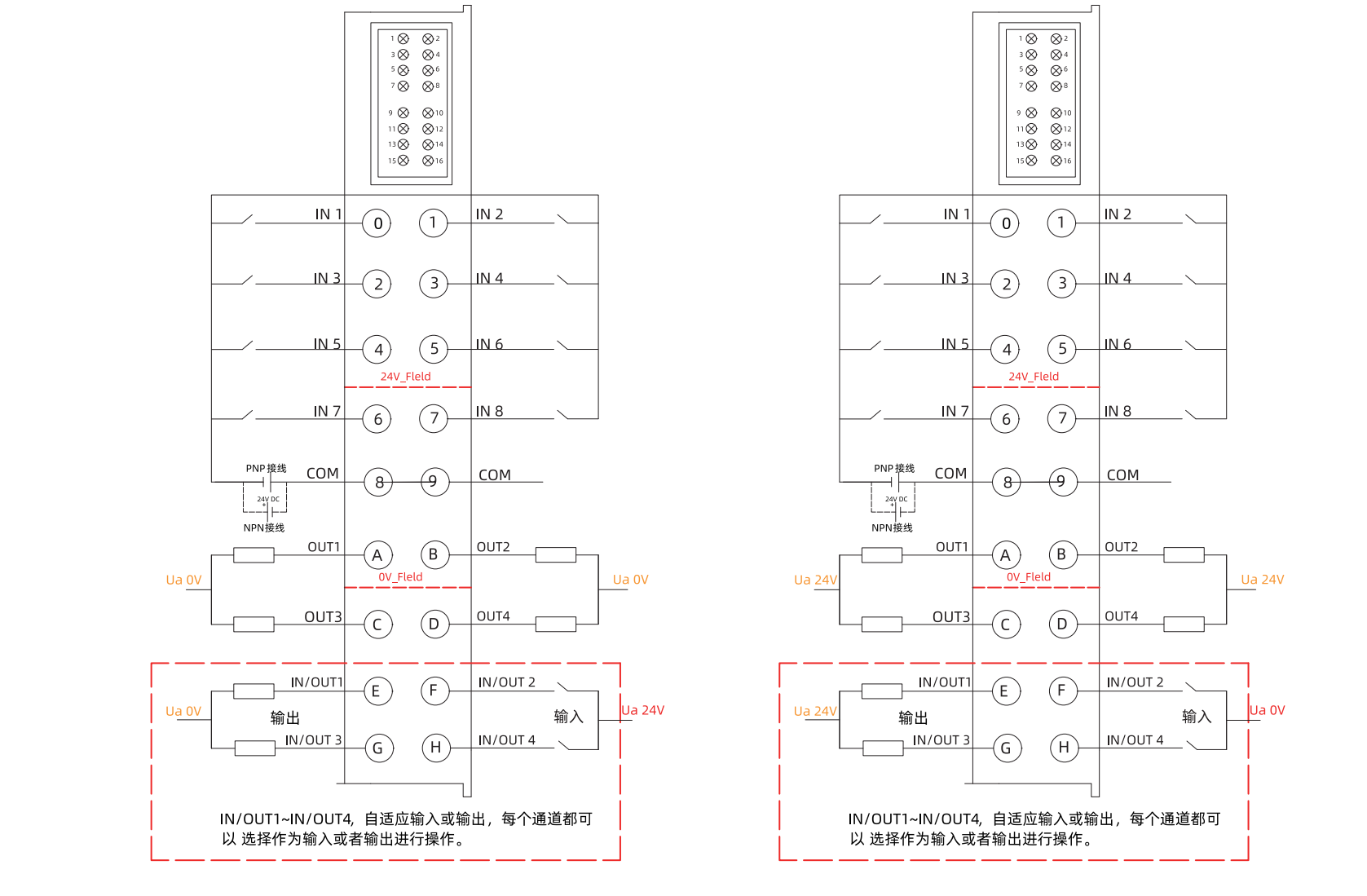 自适应DI/DO(可选择支持PNP输入/输出或NPN输入/输出)