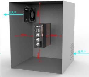 为了利于通风以及模块更换,模块四周与安装环境及周边部件之间至少应预留一定的空间,预留空间和通风风道如下图所示