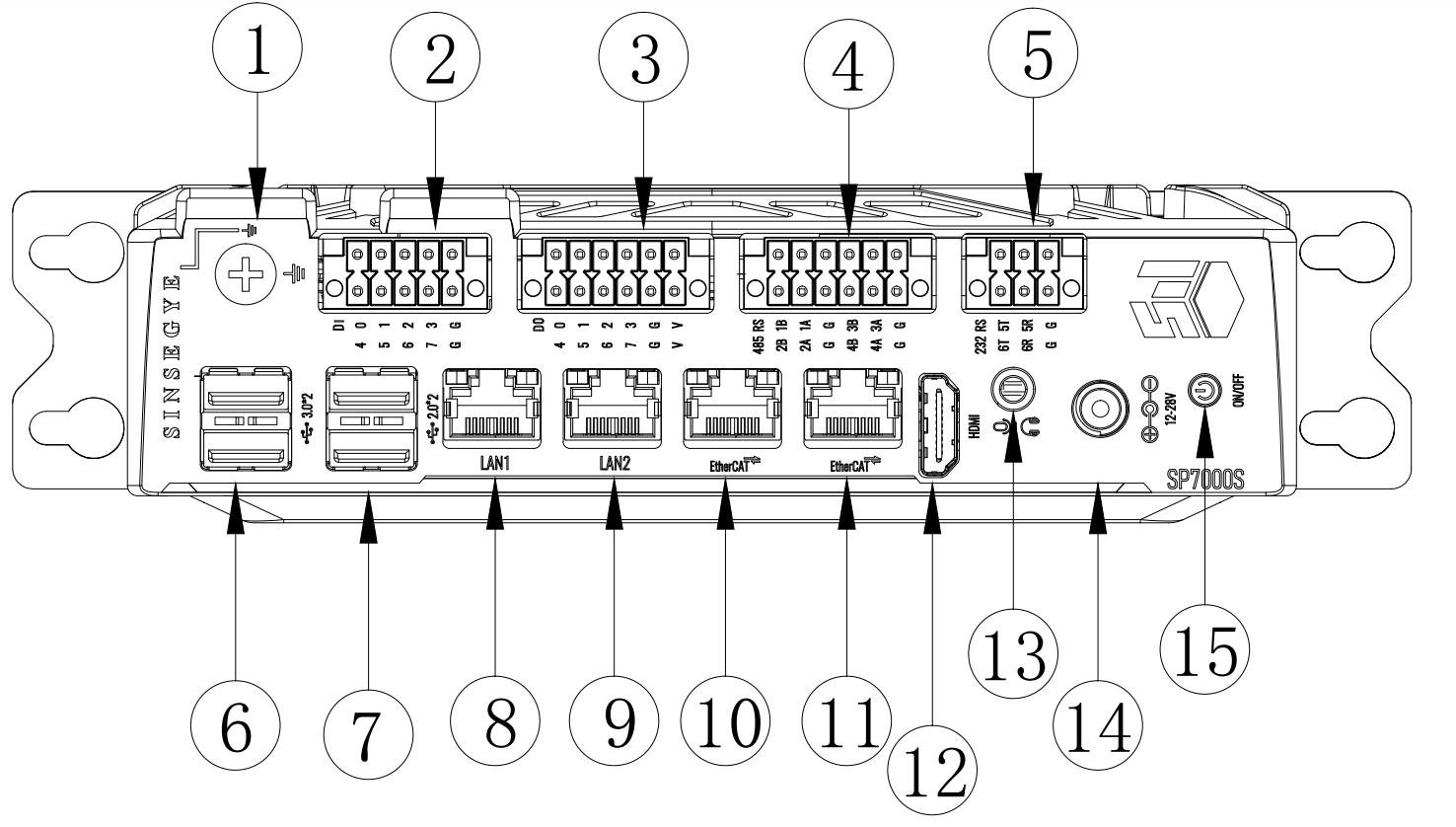 | ② | DI接口 | 8路输入,支持NPN和PNP |