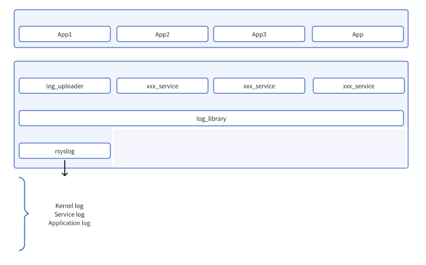 日志要求方便后期查询处理,主要分为Kernel日志、Service日志、Application日志、Peripheral日志。这些日志源主要方便IDE汇总以及云端制定特定日志文件回读