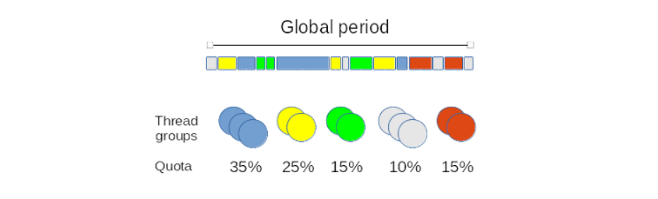 在每个全局周期内,各线程组可以在其配额内运行线程。当组内所有线程的总运行时间达到配额后,该组将被暂停,等待下一个周期。