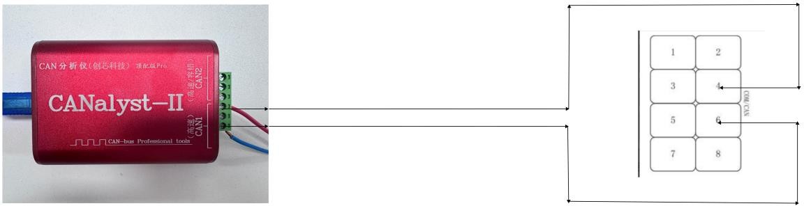 如下图,左侧 HSL 为 can1 的接口,右侧HGL 为 can2 的接口。可以根据自己的需要选择 can