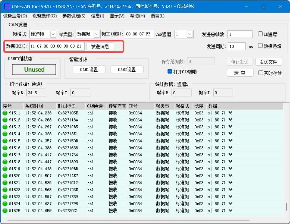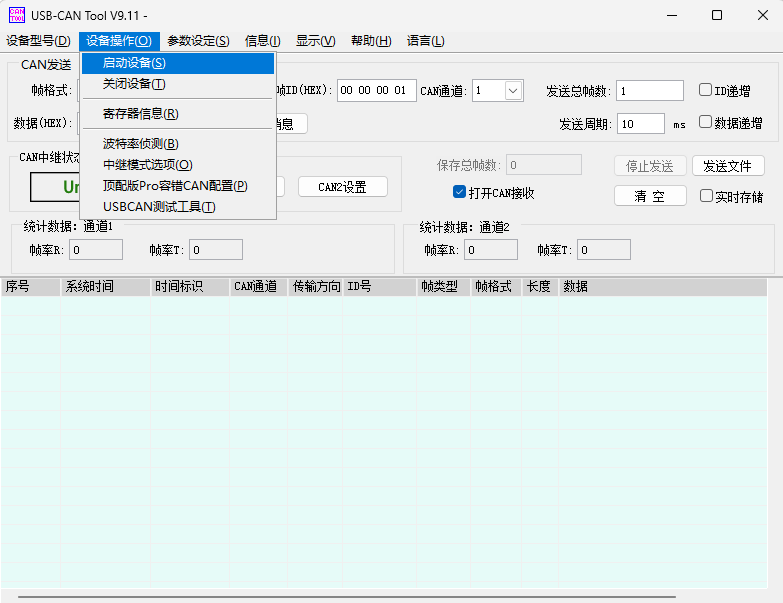 当 USB-CAN tool 工具调试通时,效果如下图。