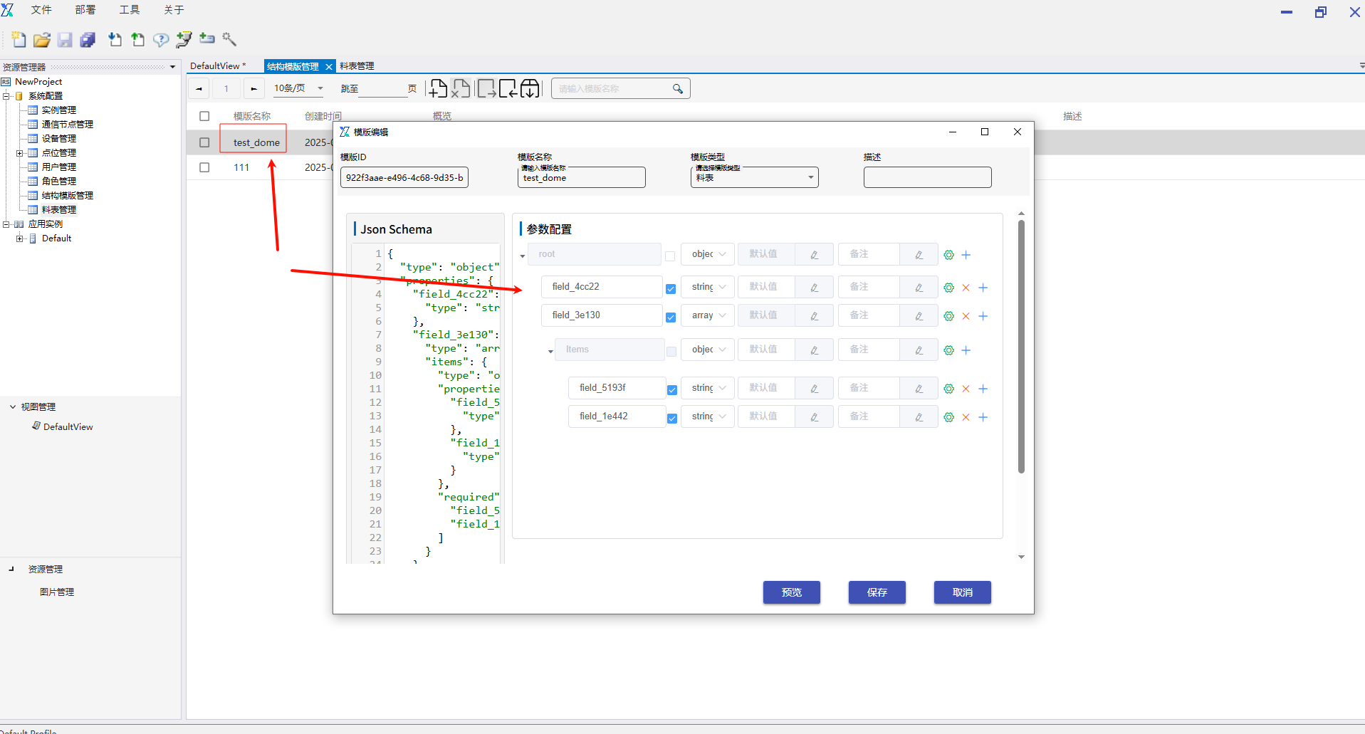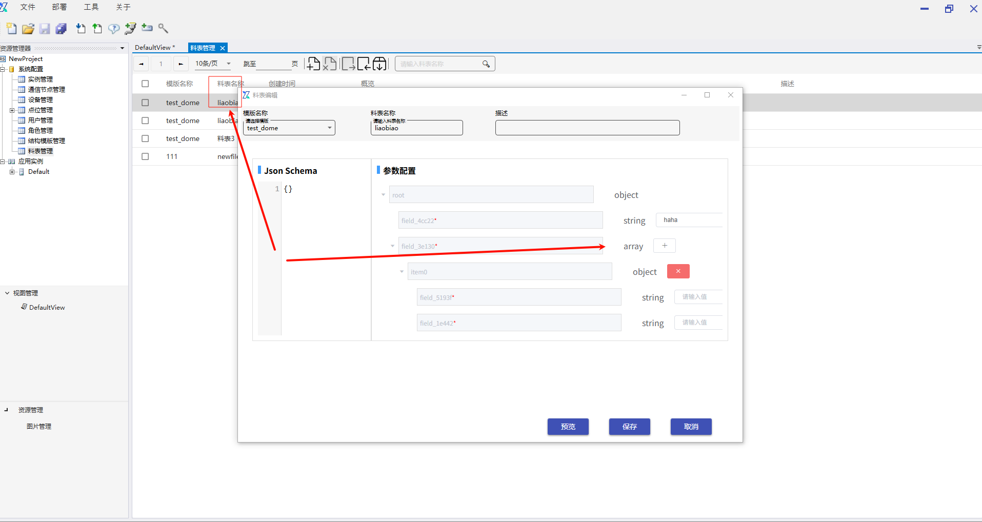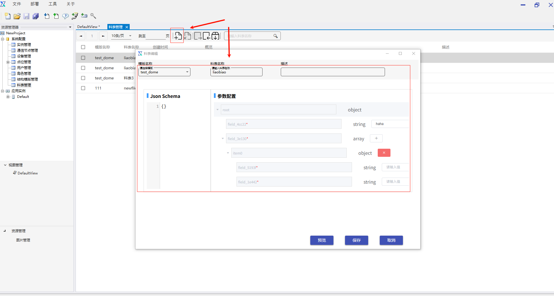 6.2.8.2 料表列表 料表列表接口无需填写请求参数,返回数据为当前项目中“系统配置-料表管理”中的料表列表信息,具体绑定数据接口操作,以及返回值赋值操作可参考“石墨盘数据”接口。 6.2.8.3 料表详情 料表详情接口根据用户传递的料表ID请求参数,返回料表的详情数据信息,具体绑定数据接口操作,以及返回值赋值操作可参考“石墨盘数据”接口。 6.2.8.4 自定义接口 选择自定义接口后,下方会出现自定义接口的输入框,用户可填写自己已经写好的服务请求地址,选择请求方式,添加请求参数,配置结果数据返回赋值,完成实际使用场景的使用。