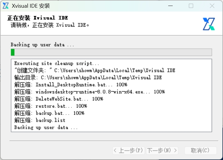 Xvisual IDE 依赖 .NET 8 Desktop Runtime 来支持其应用程序运行环境。在安装过程中,安装程序会自动安装或更新到最新版本的 .NET 8 Desktop Runtime。这一步可能会耗时较长,请耐心等待。