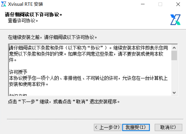 如果系统提示需要管理员权限来运行安装程序,请确认允许。Xvisual RTE 的安装程序可能会要求管理员权限来写入系统文件和注册表项。