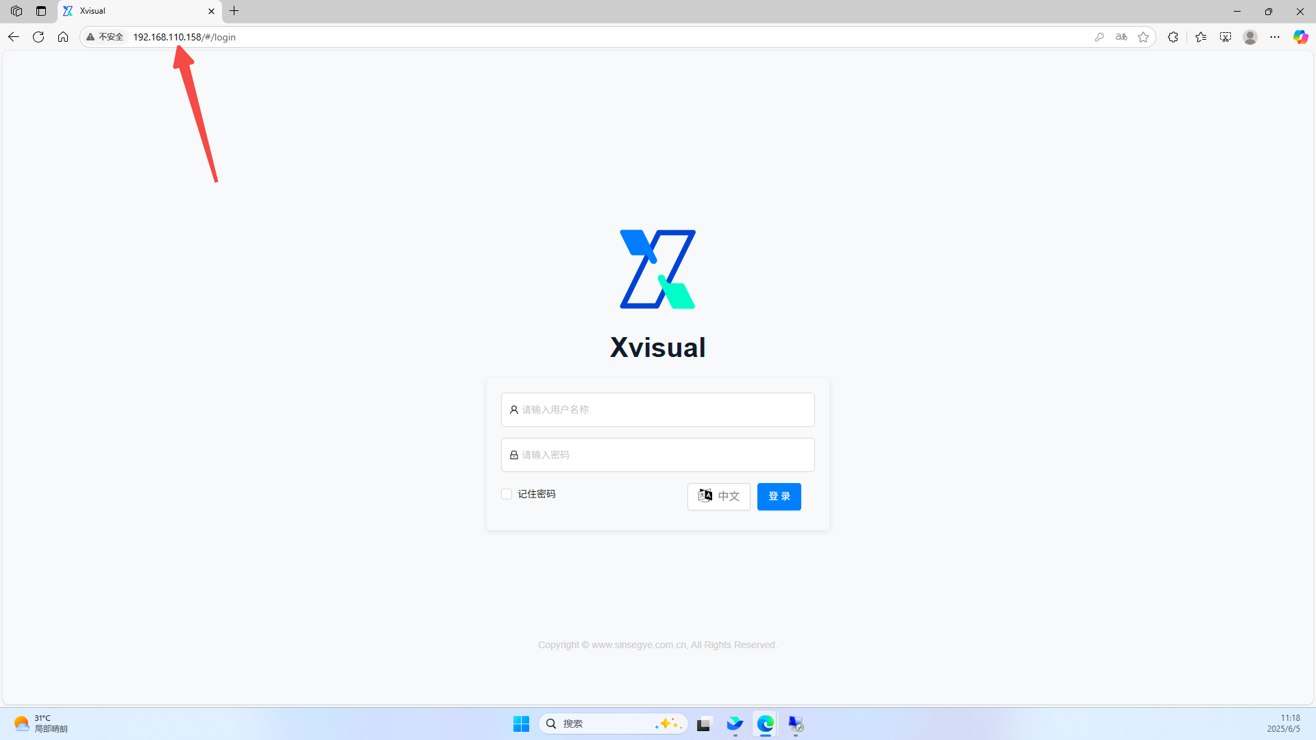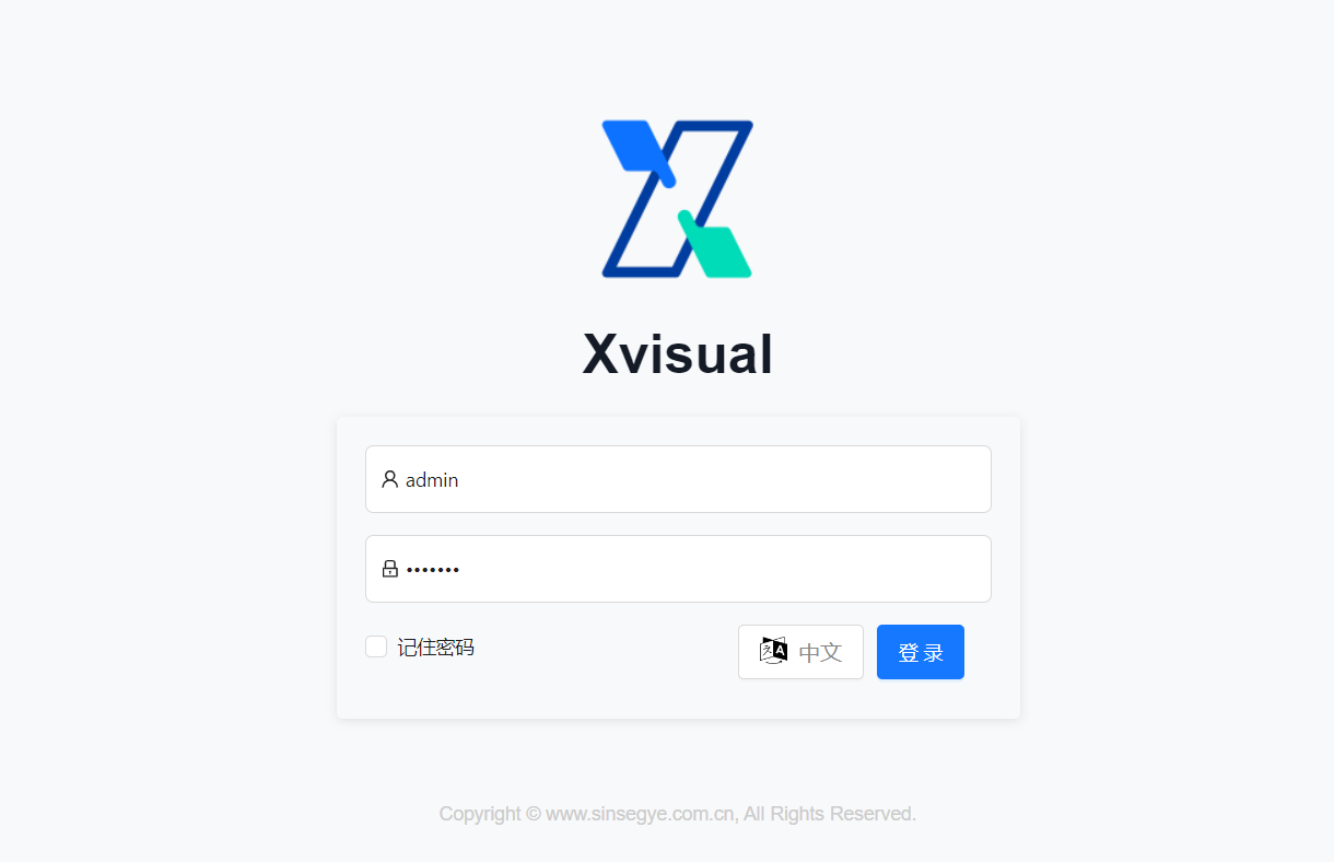 默认登录页面将显示 Xvisual 的用户界面,默认的管理员账号为 Admin,密码为 Xvisual。