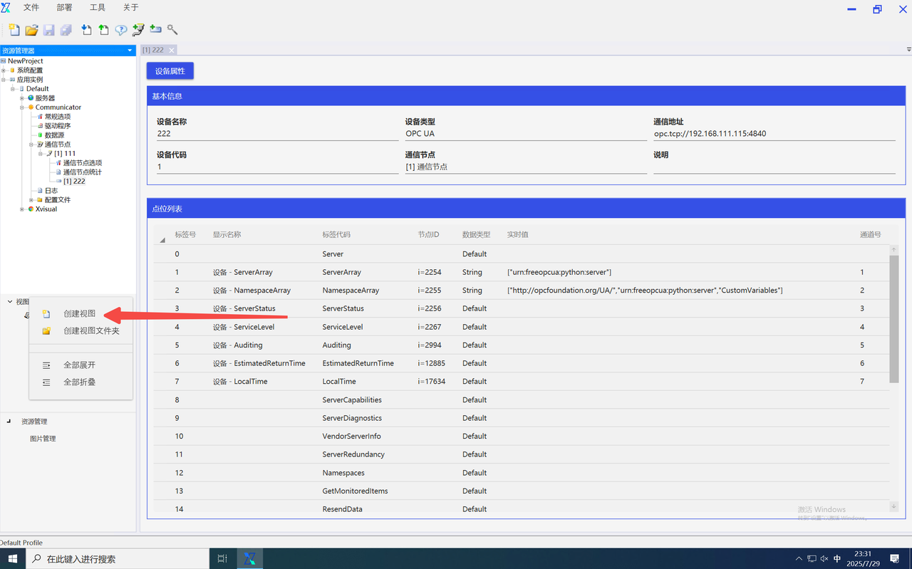 用于创建通信线路、设备和点位的向导。