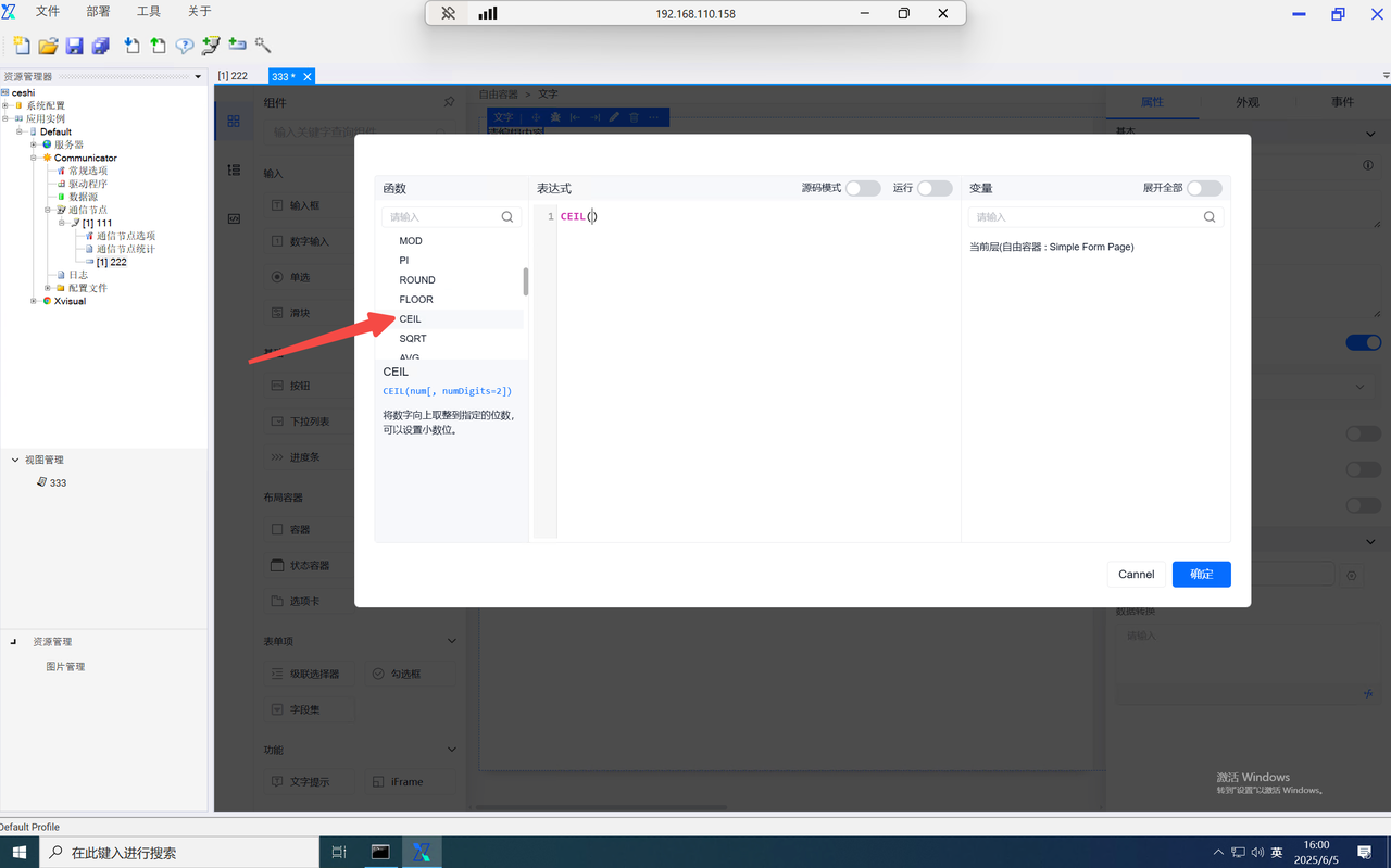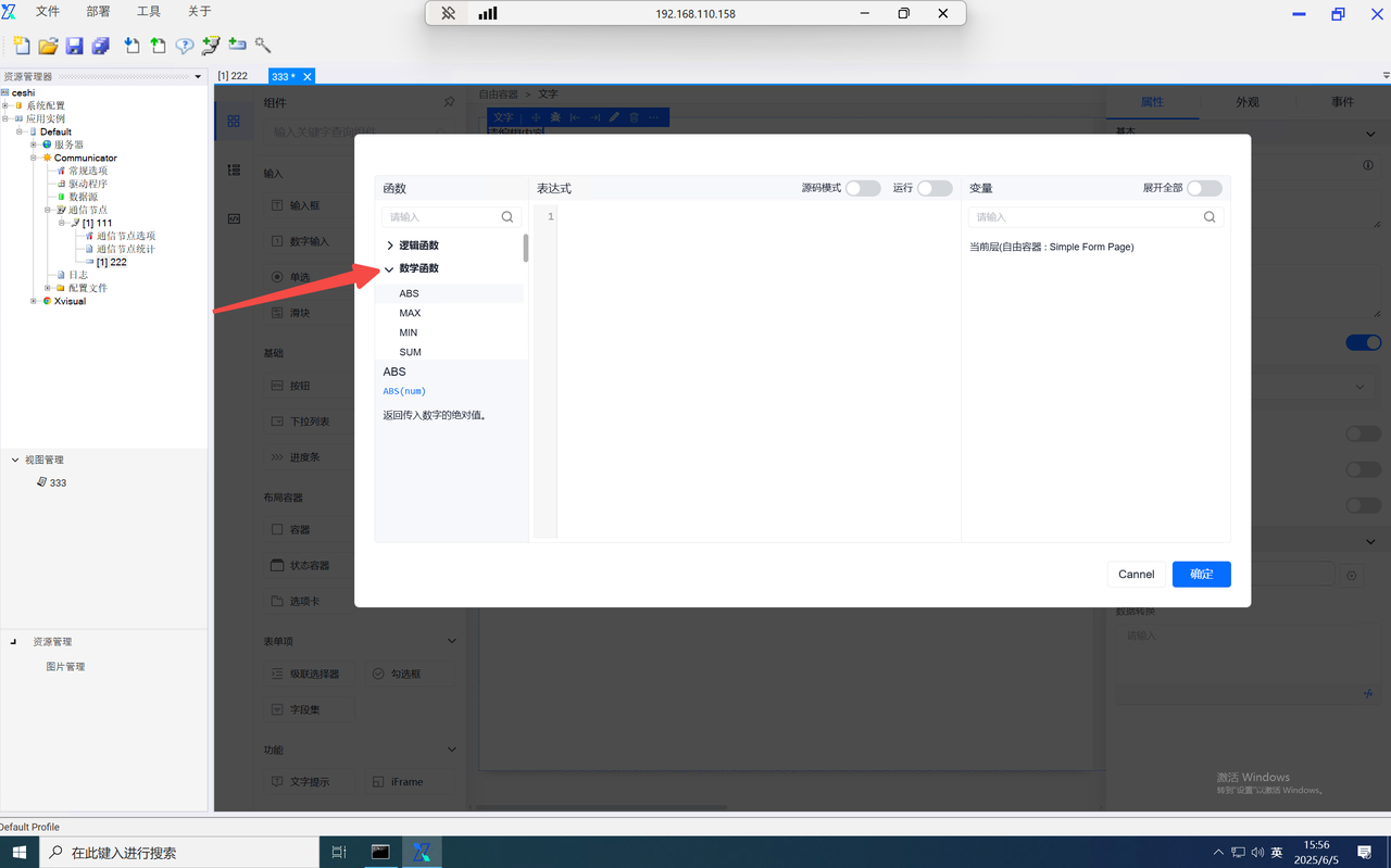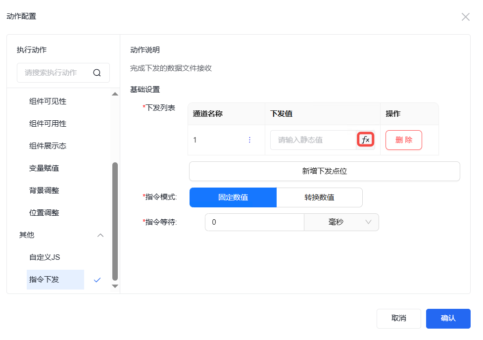 输入下发值或自定义函数设置下发值,点击自定义函数按钮可进入自定义函数设置页面。