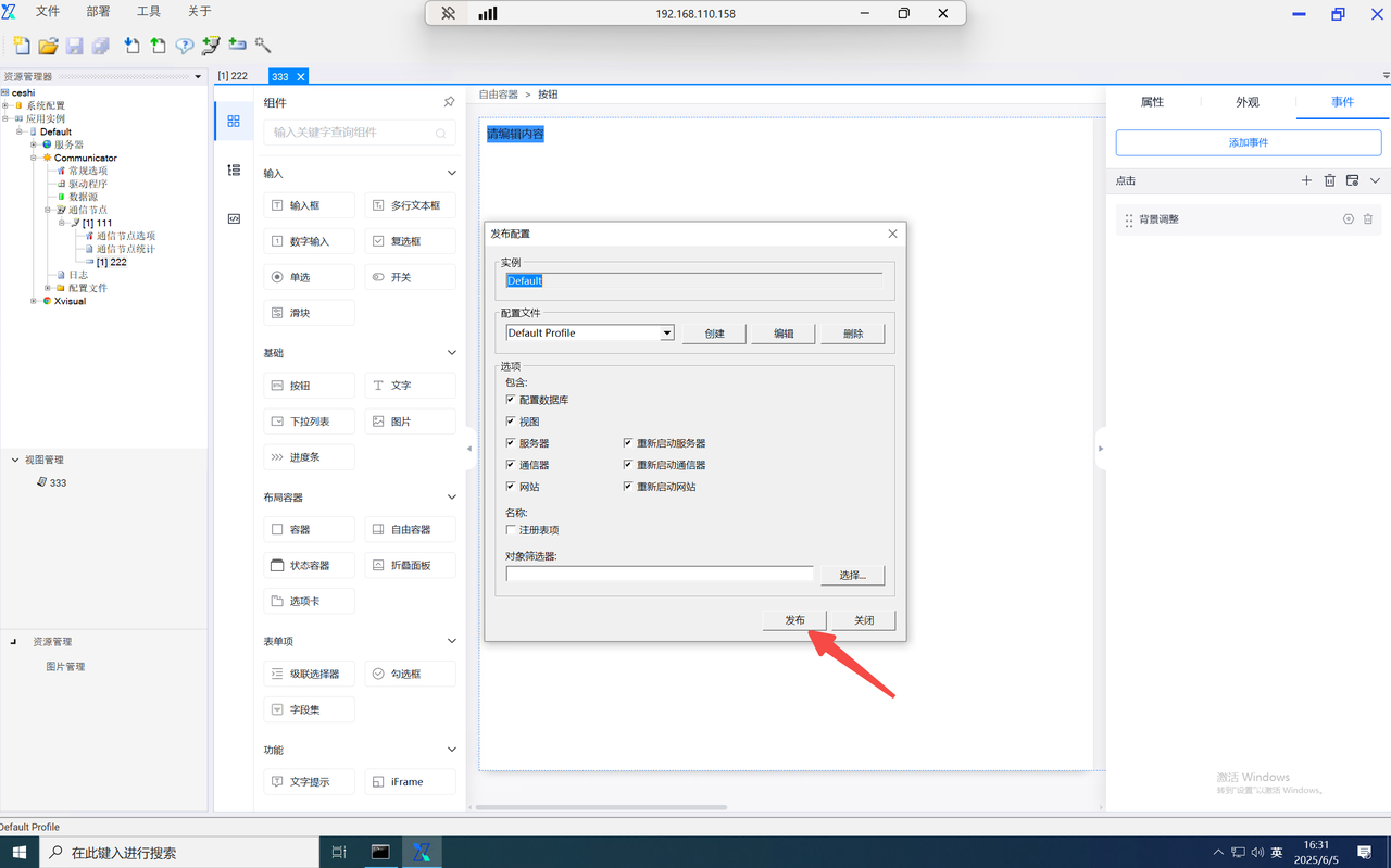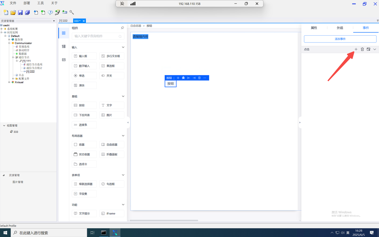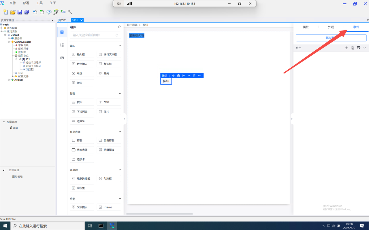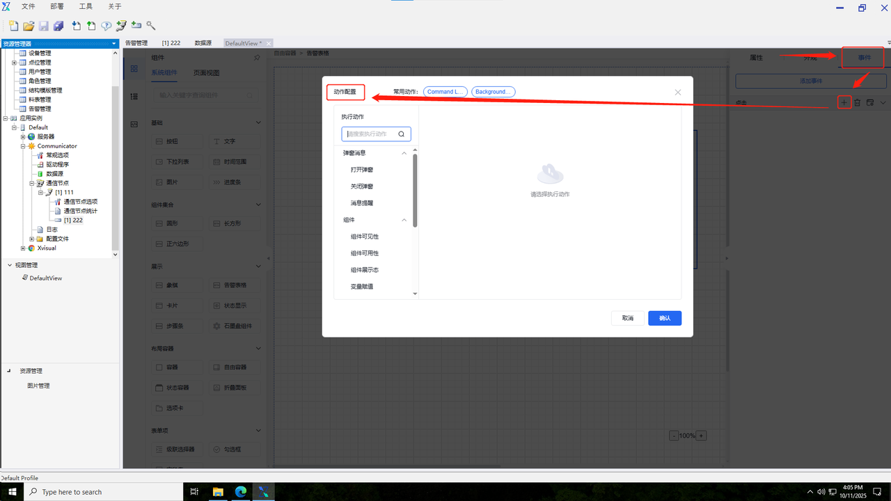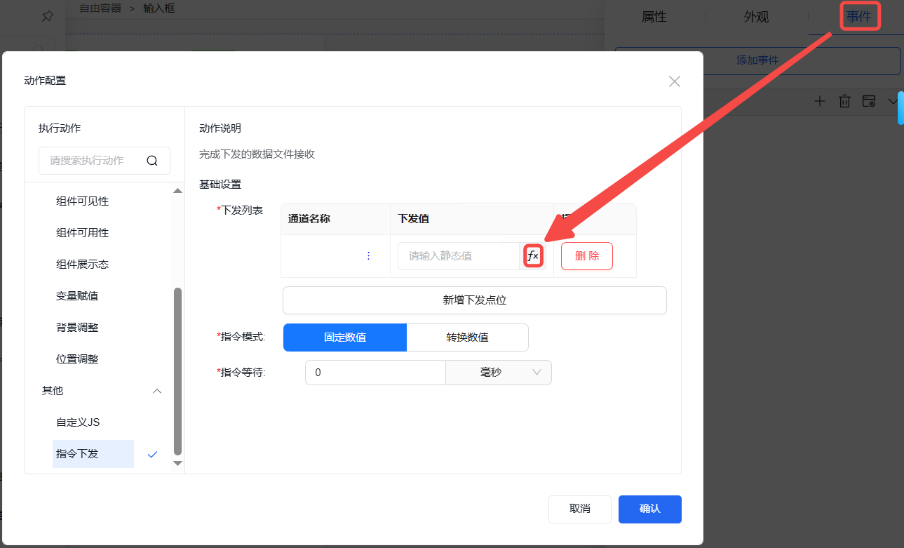 打开事件弹窗,选择指令下发。