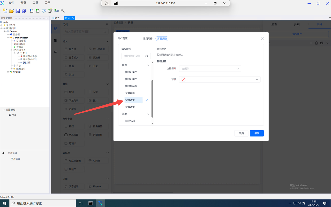 设置所选组件的背景属性,可设置背景的颜色。