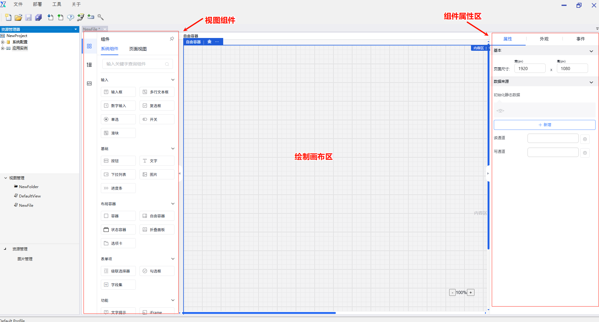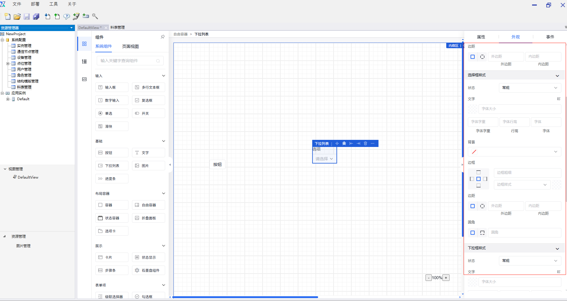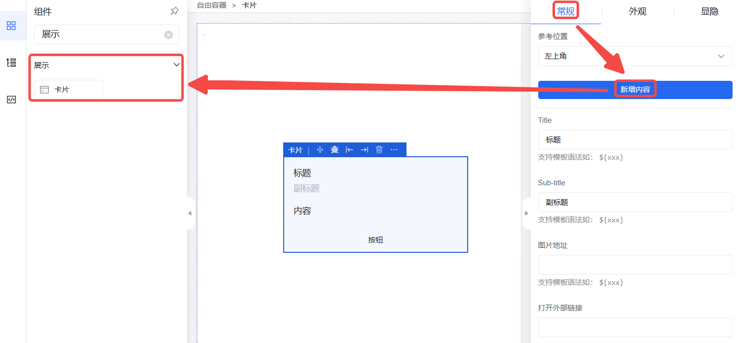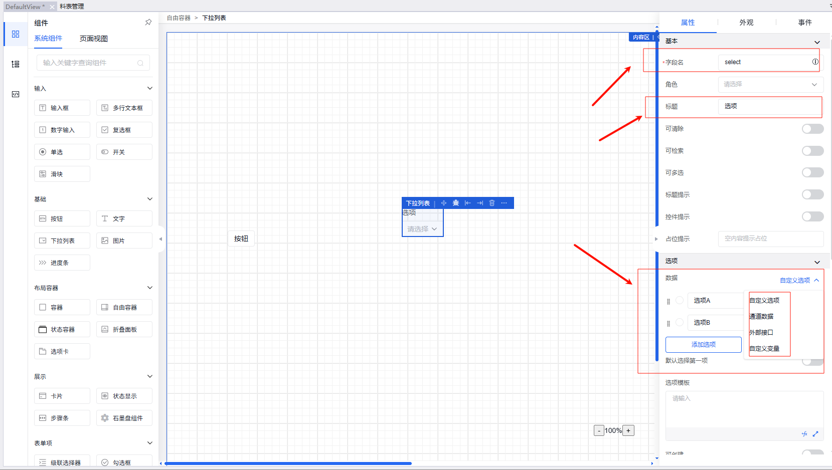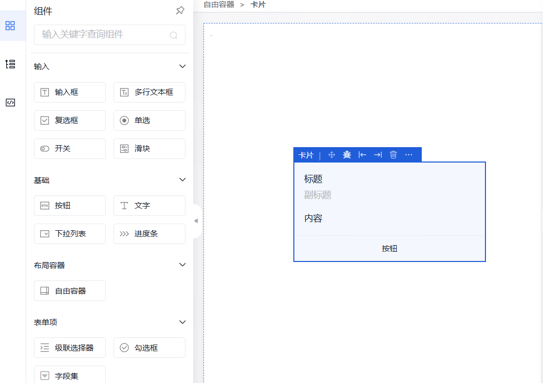 弹窗可支持复杂操作交互,如嵌套按钮、输入框、图表、表格等。弹窗内的组件属性、外观、事件设置同在外部页面操作一致。弹窗属性可设置其弹窗方式、标题、可拖拽性、快捷按键关闭等。