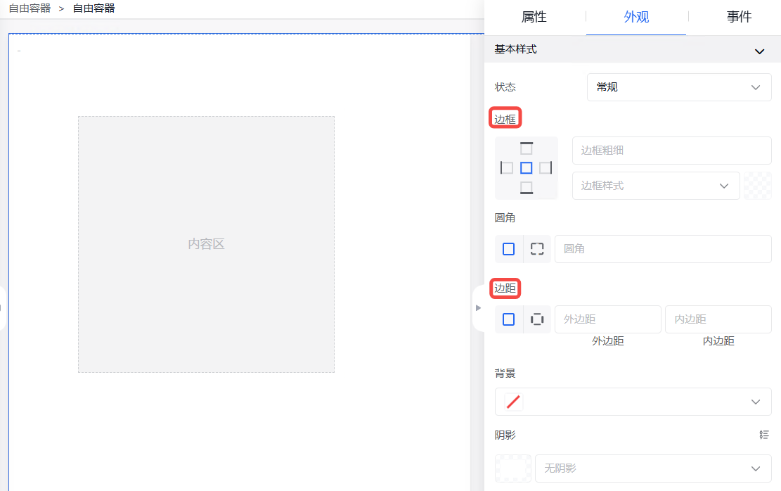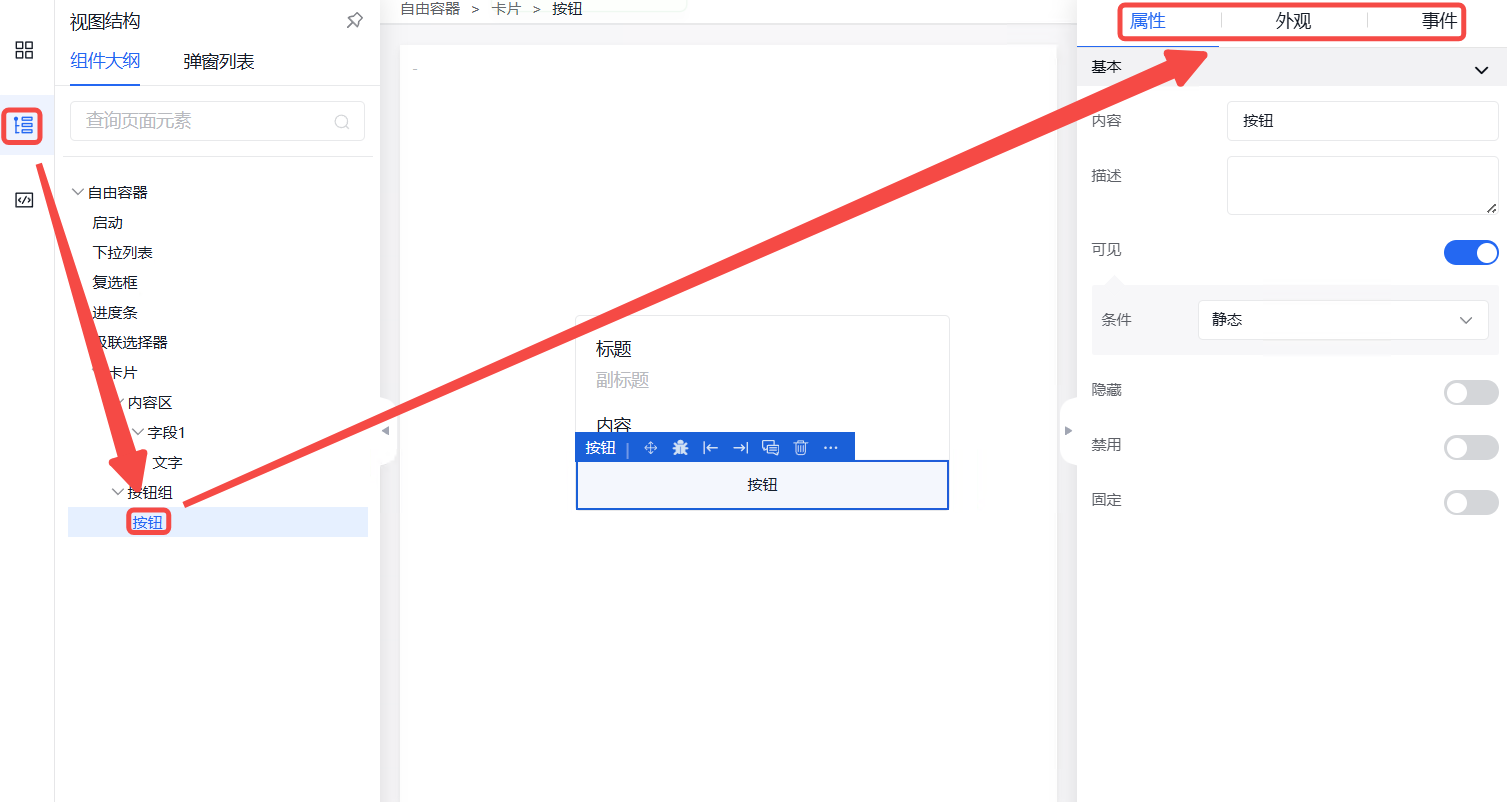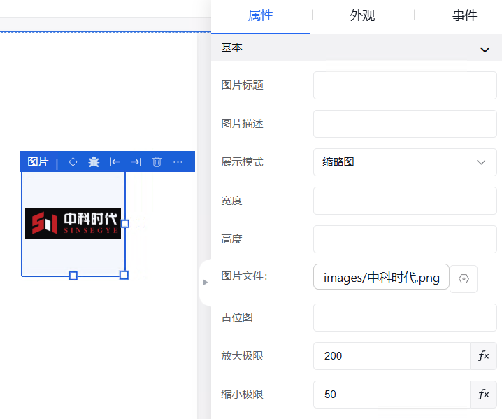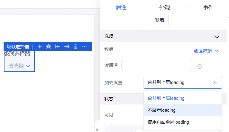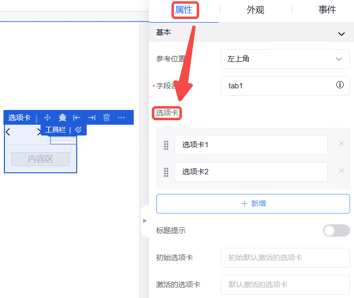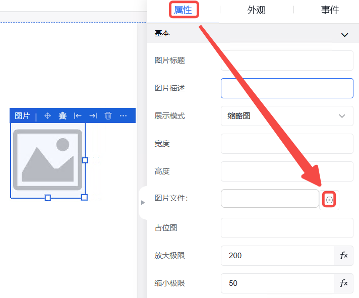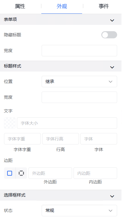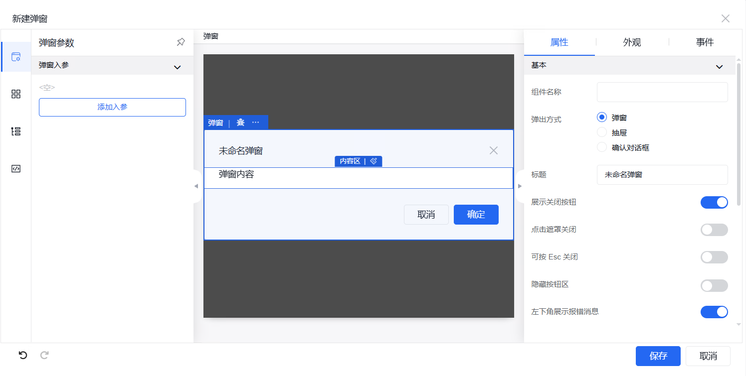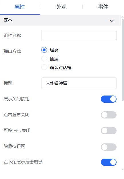 弹窗中的外观设置、事件设置操作同其他组件操作一致。