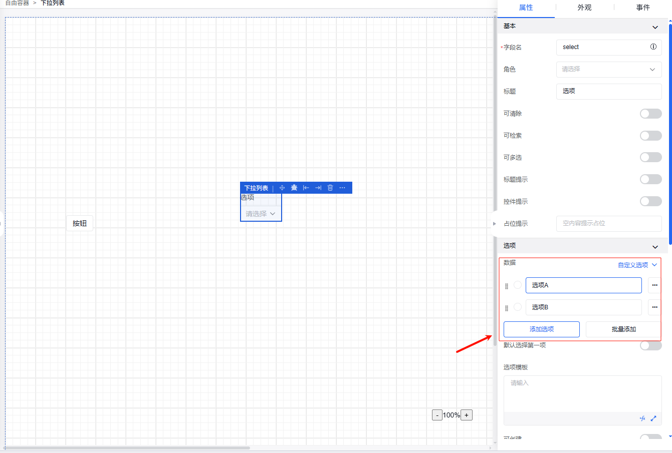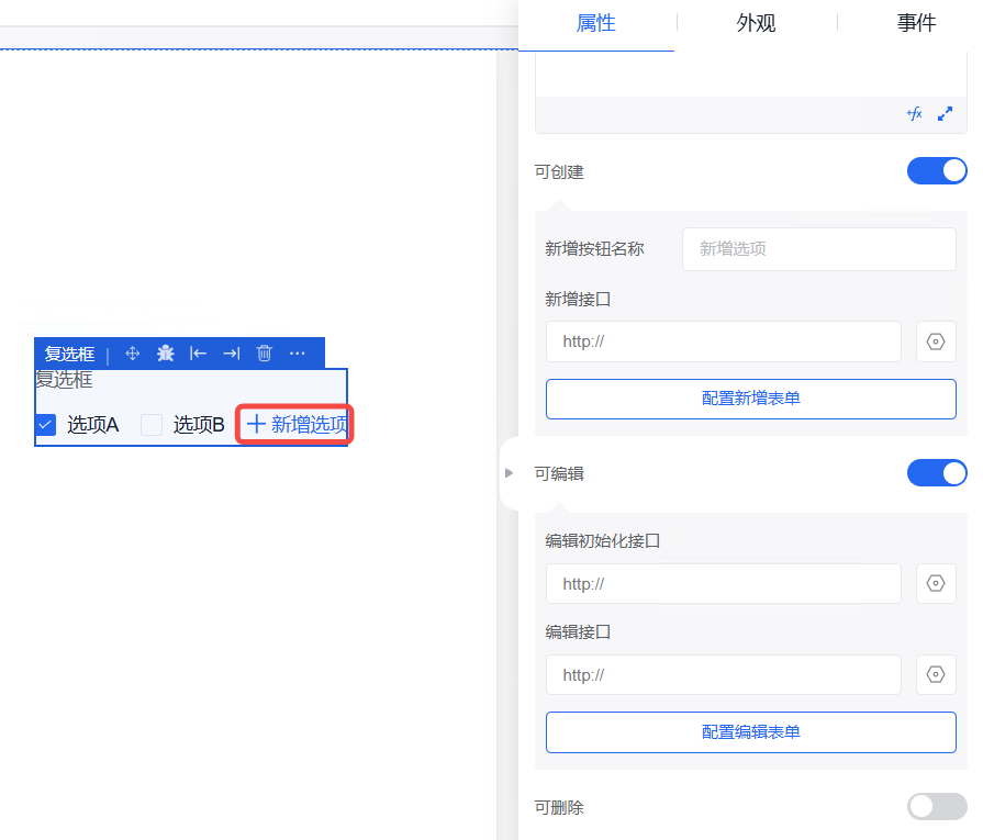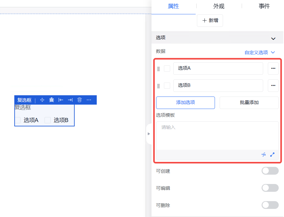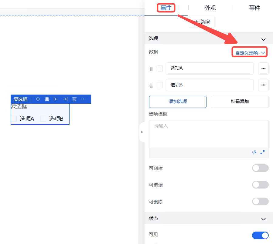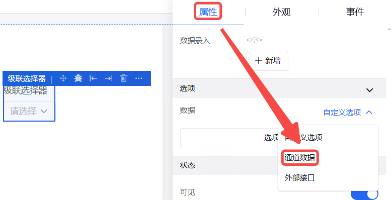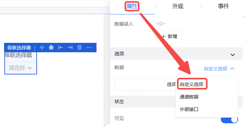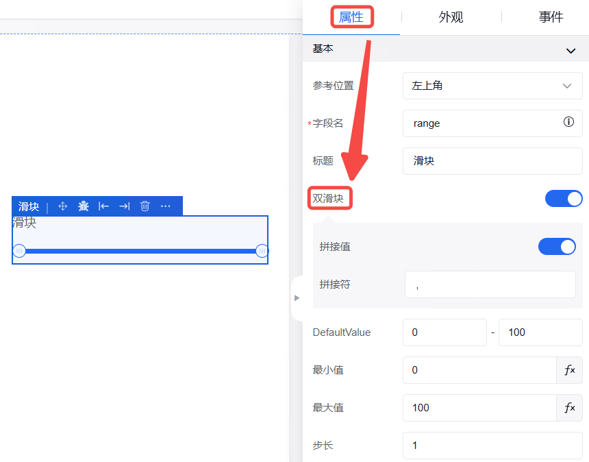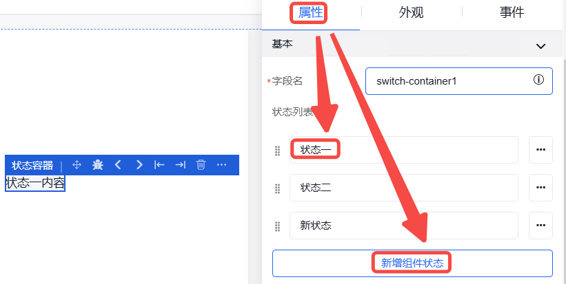 弹窗中的外观设置、事件设置操作同其他组件操作一致。