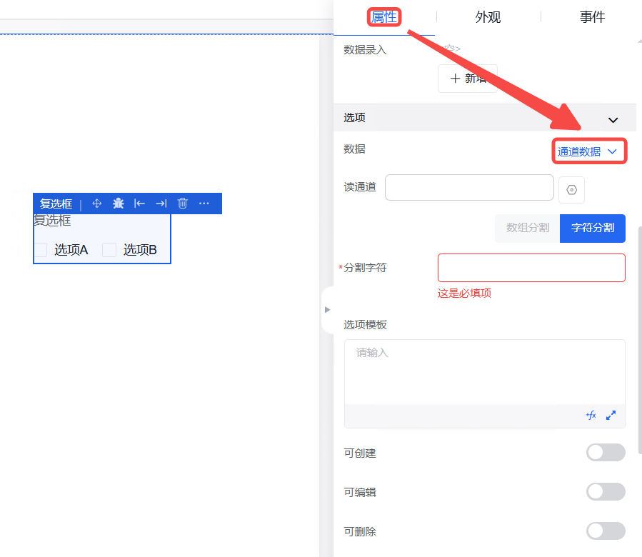 折线图组件。属性及事件如下表所示:
