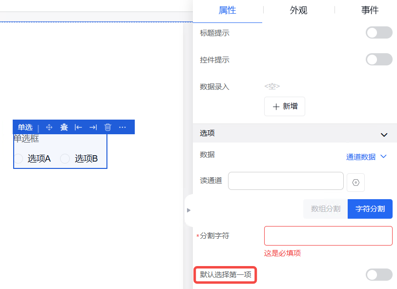 可以控制所选的组件的显示或者隐藏状态以及维持状态的条件。