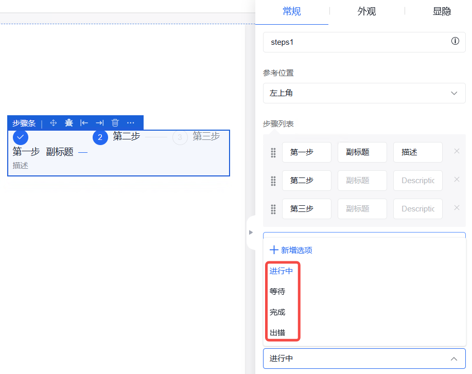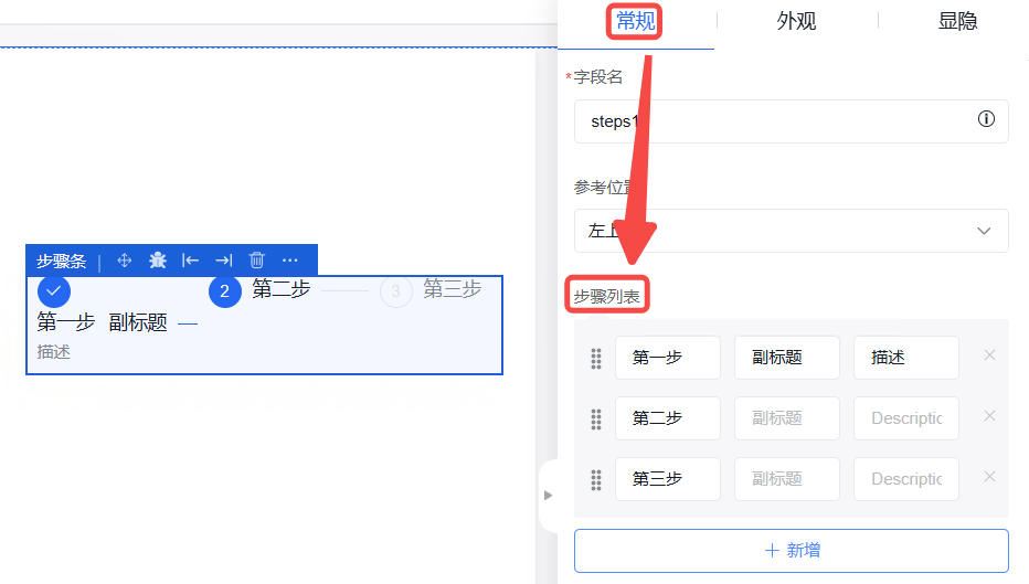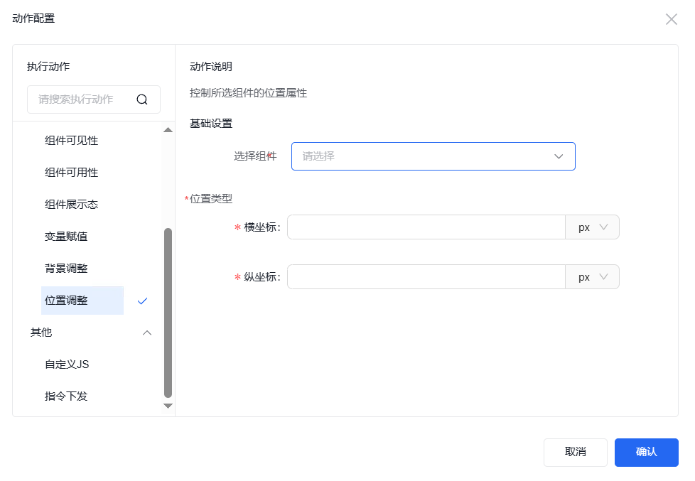 设置所选组件的位置属性,可选择需要定位的组件以及定位的具体位置。