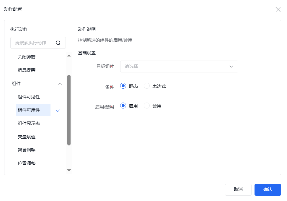 可以控制所选的组件的启用或者禁用状态以及维持状态的条件。