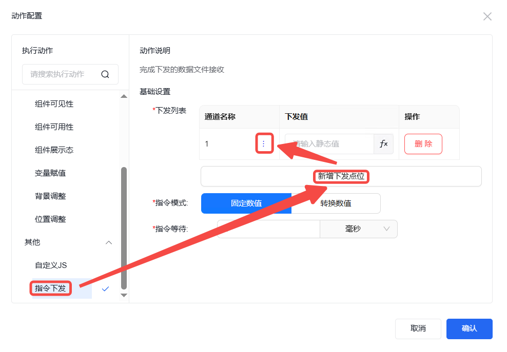 在指令下发内容里面,用户可以完成向下通过数据下发。下发的数据可进行自定义或设置具体数值。具体操作步骤如下: