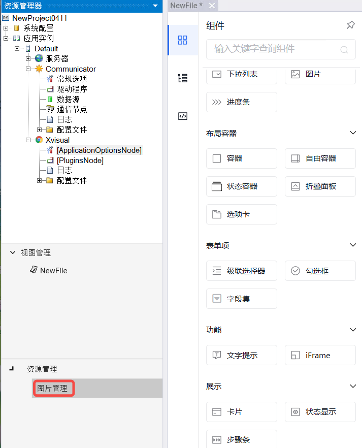 Xvisual-Administrator是一个集成开发环境,提供编辑配置主要的Xvisual应用程序和Xvisual-Server模块,用于开发Xvisual项目和查看自动化系统的状态。