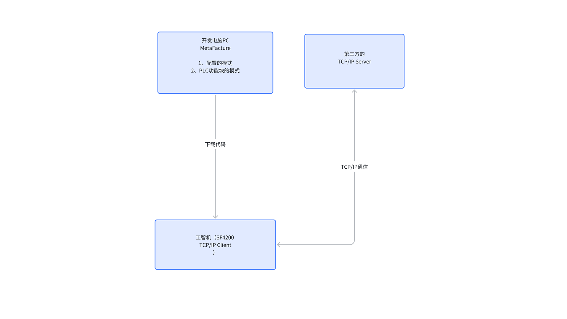 工智机与第三方TCPIP服务端通过EtherNet连接。