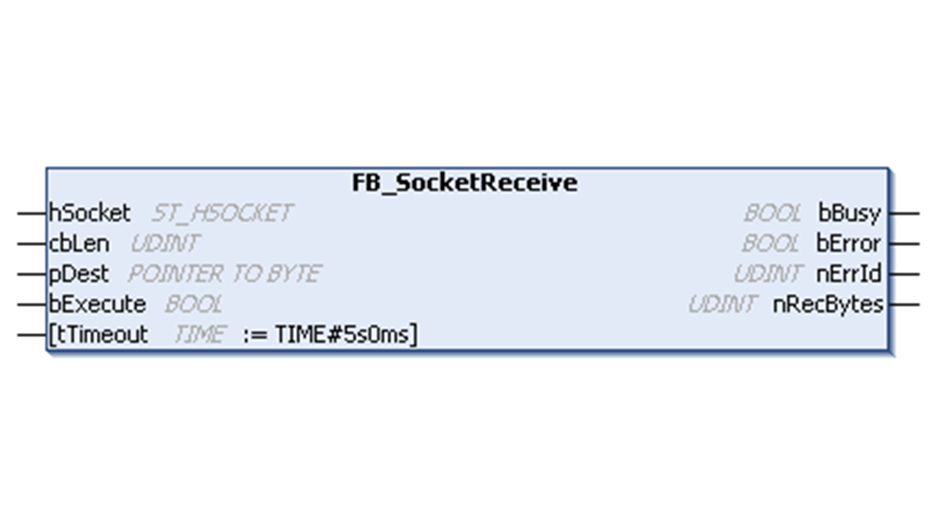 | nRecBytes | UDINT | 最后成功接收的数据字节数 |