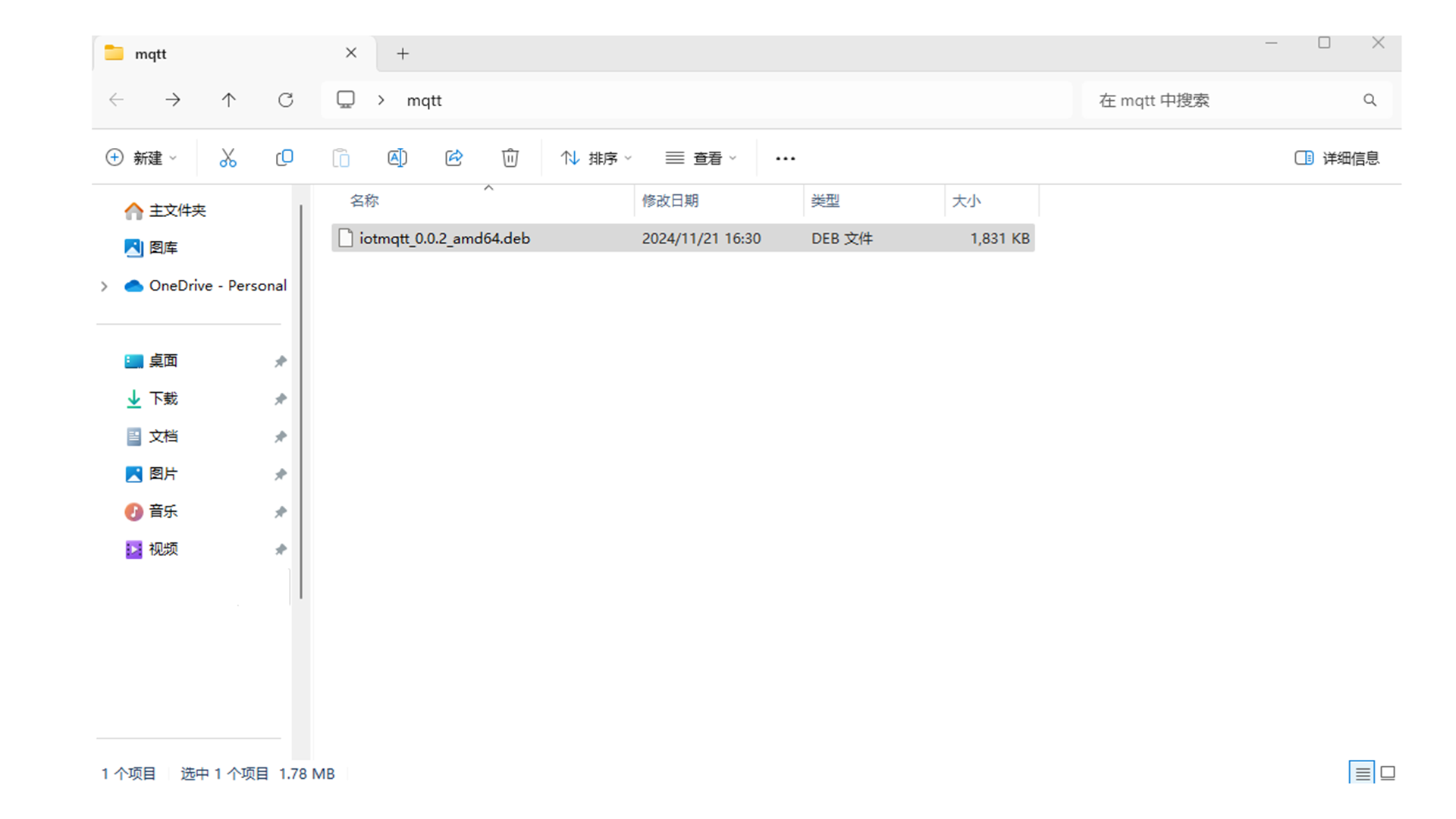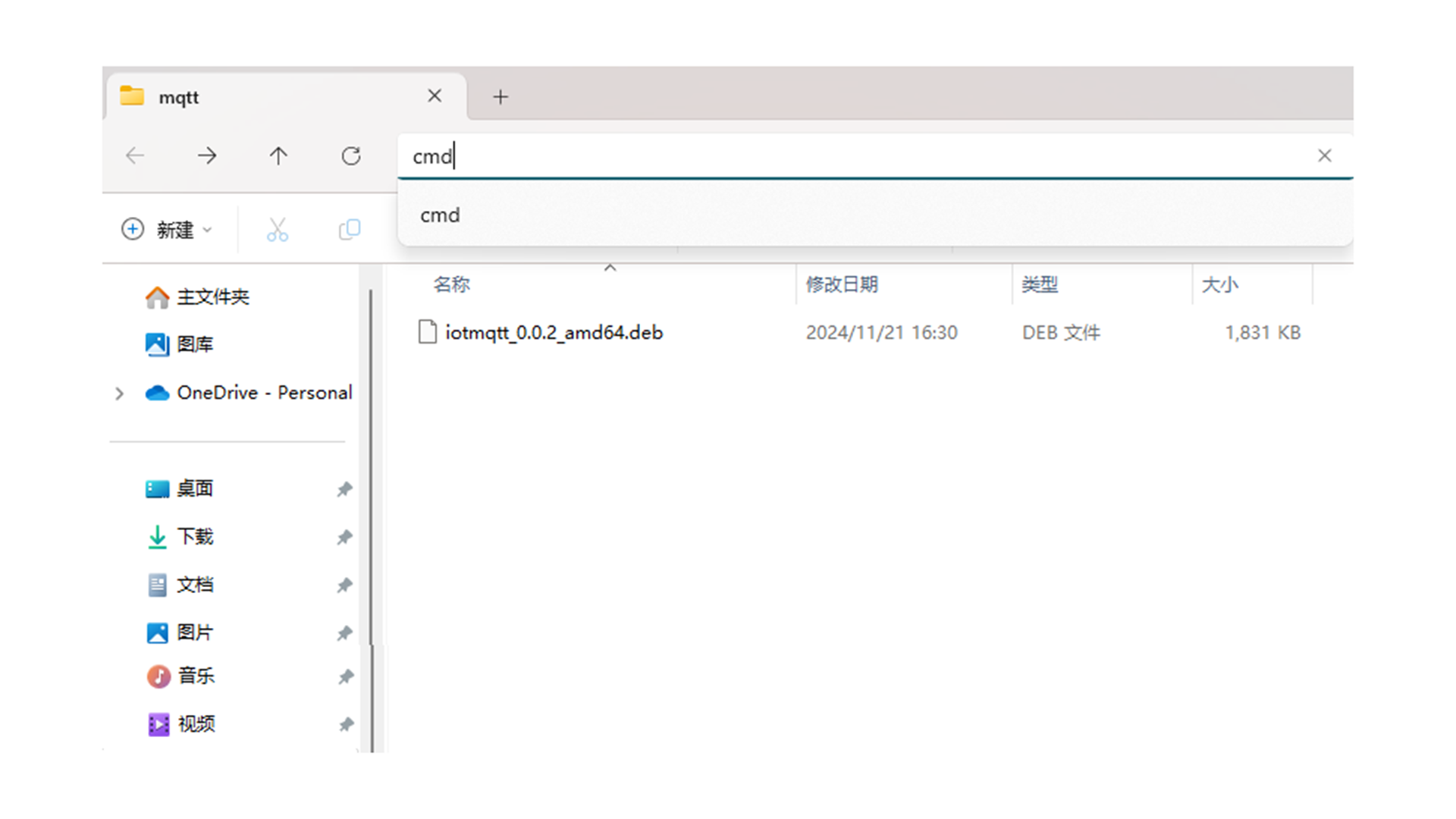 2.将工智机组件iotmqtt_0.0.2_amd64.deb下载至个人电脑中,放置在文件夹下。